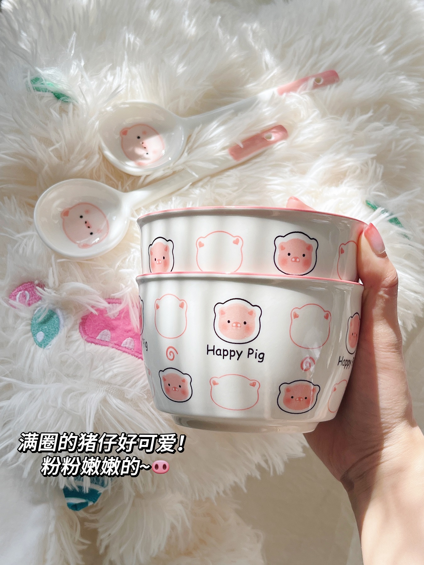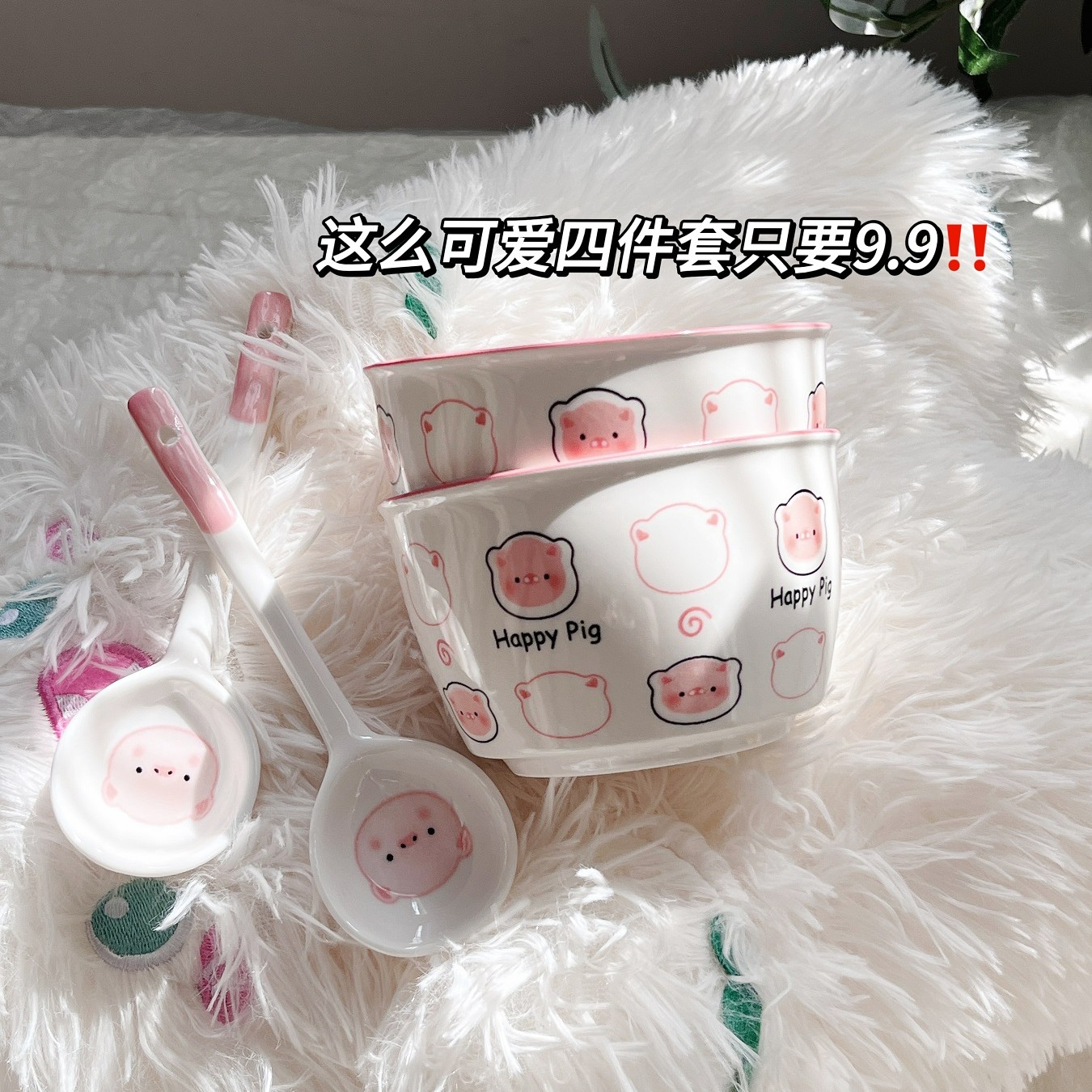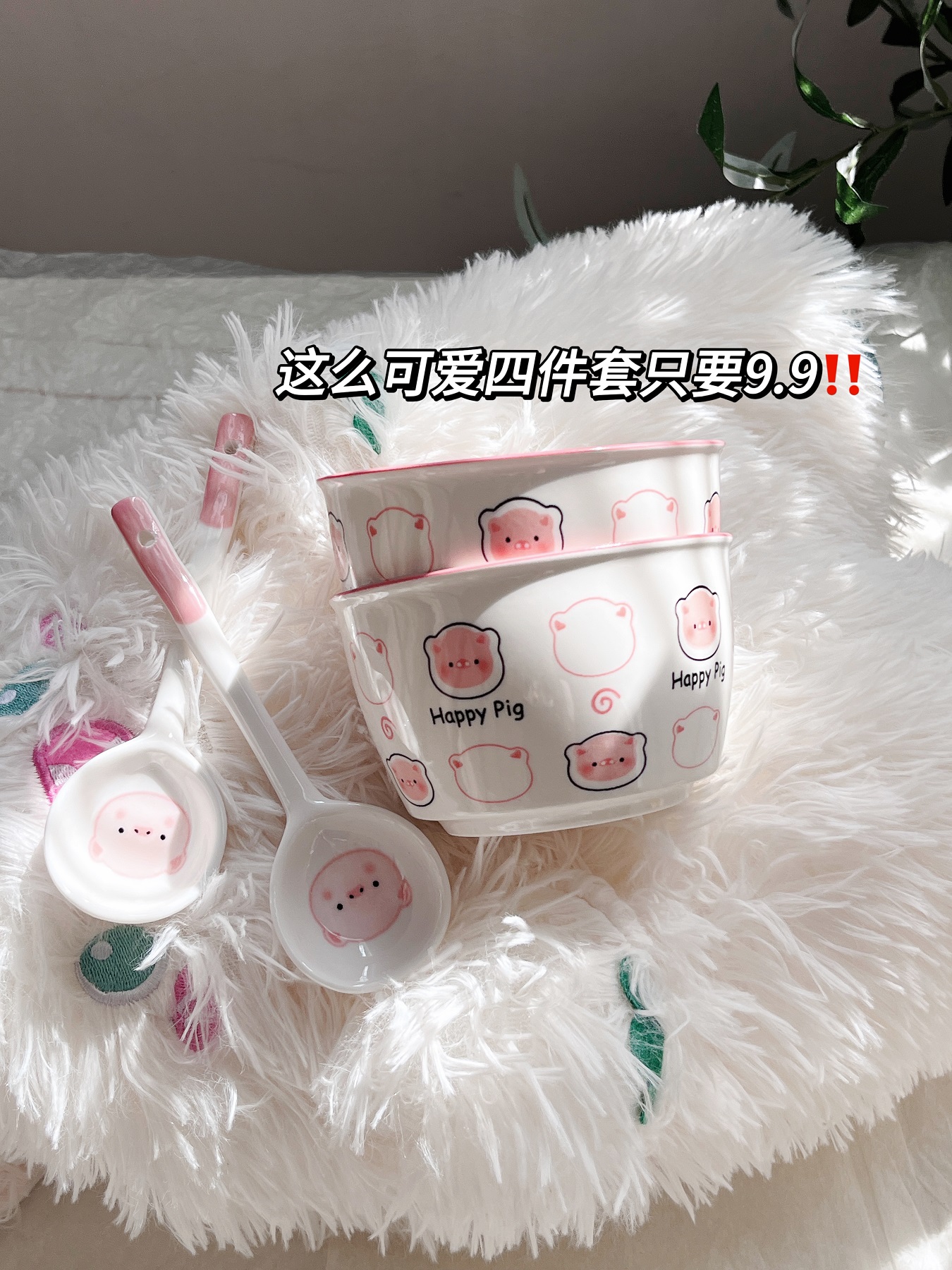 1. 这款四件套真是太可爱了!猪仔饭碗非常适合小朋友使用,大小正好,材质也安全。