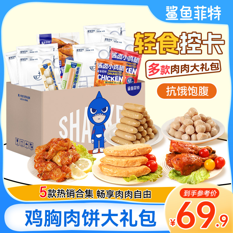 鲨鱼菲特鸡胸肉饼肠丸鸡腿高蛋白轻食代餐零食食品即食鸡胸肉