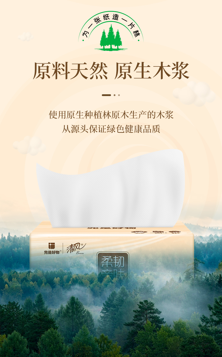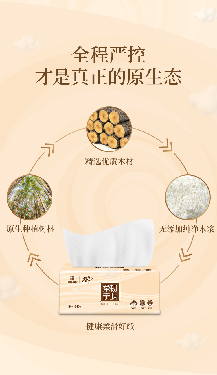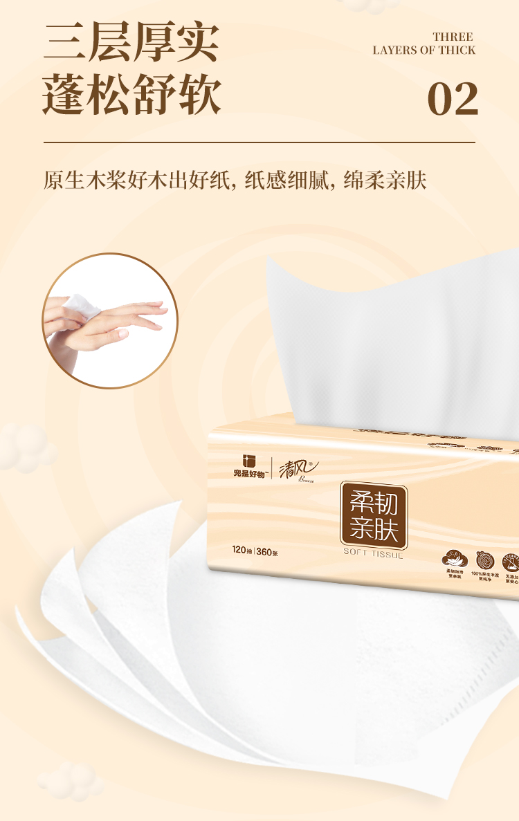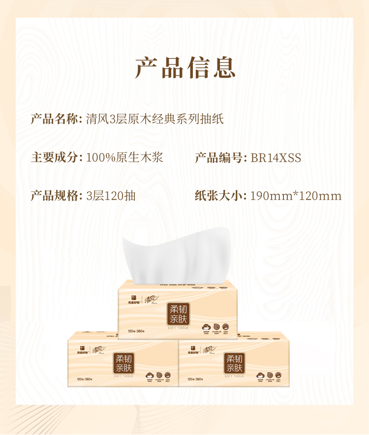 清风抽纸原木纯品120抽×20包无香家用三层加厚纸巾卫生纸囤货装