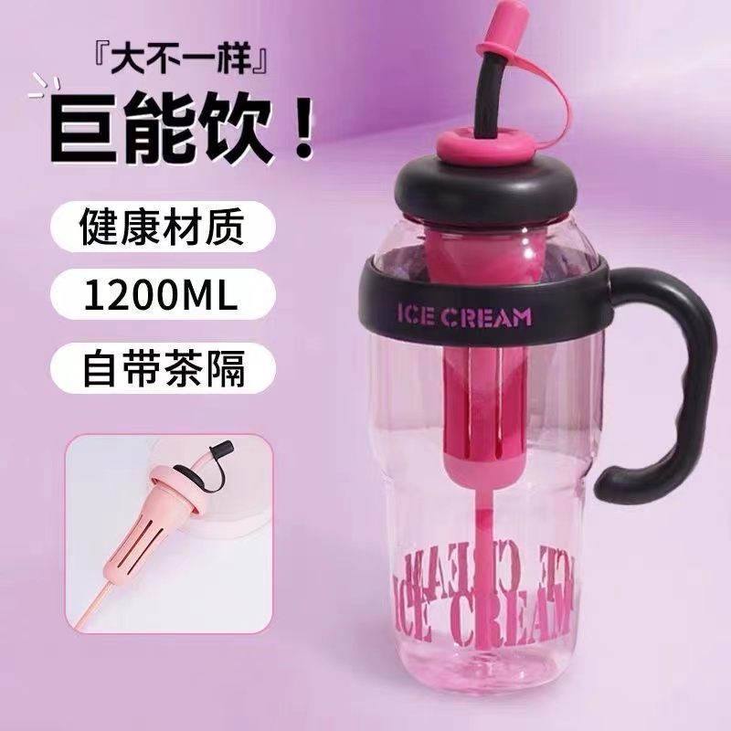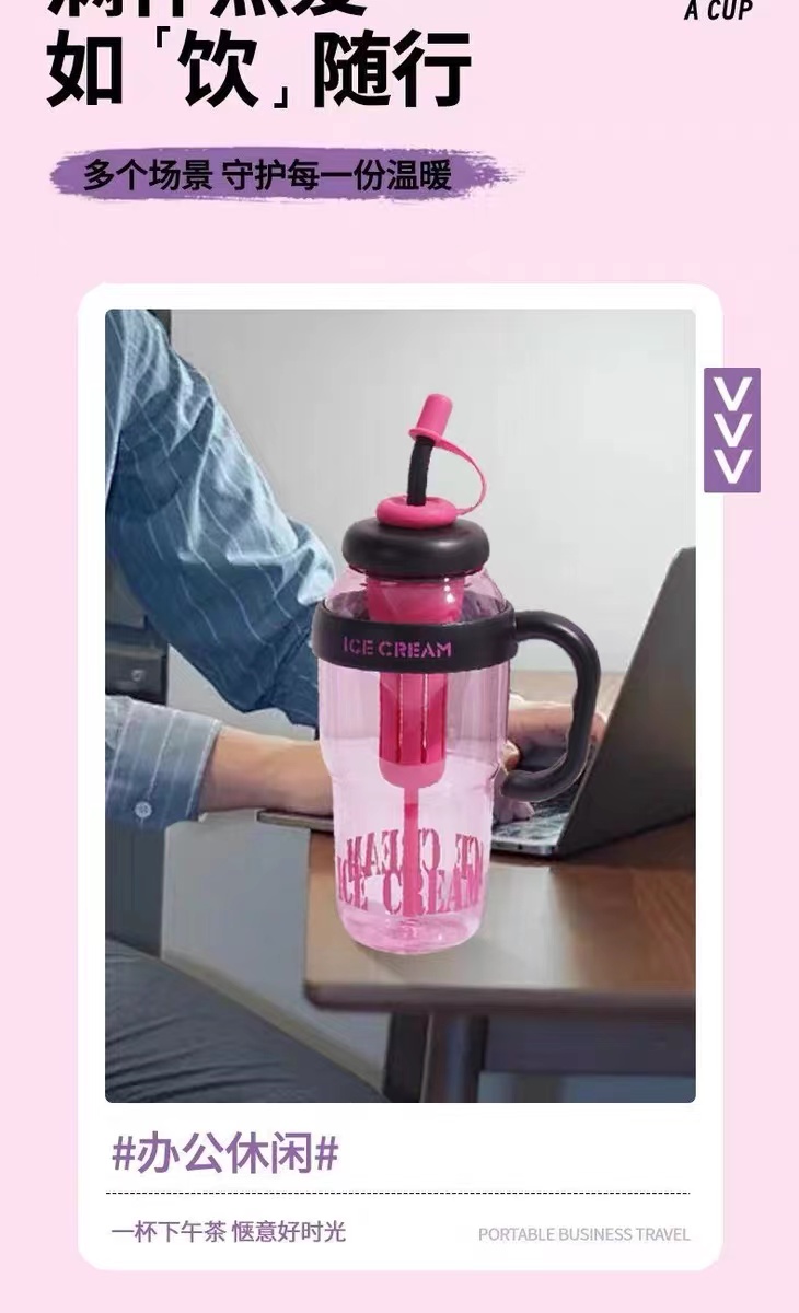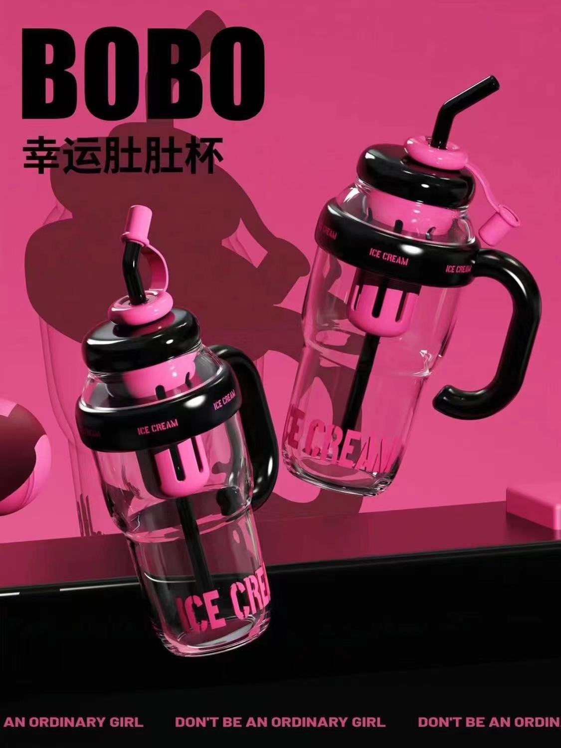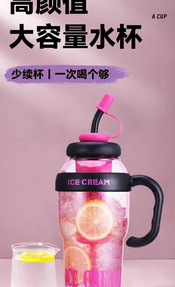 2024新款高颜值夏季塑料杯顿顿桶奶茶杯肚肚杯可爱创意骑行水壶