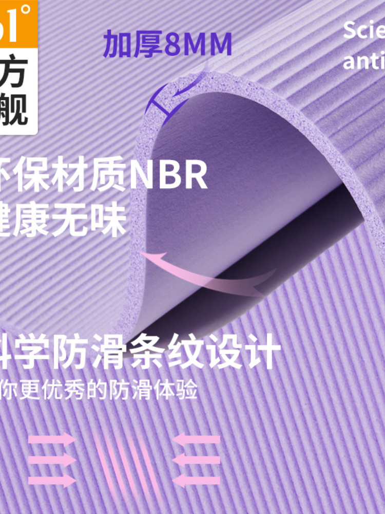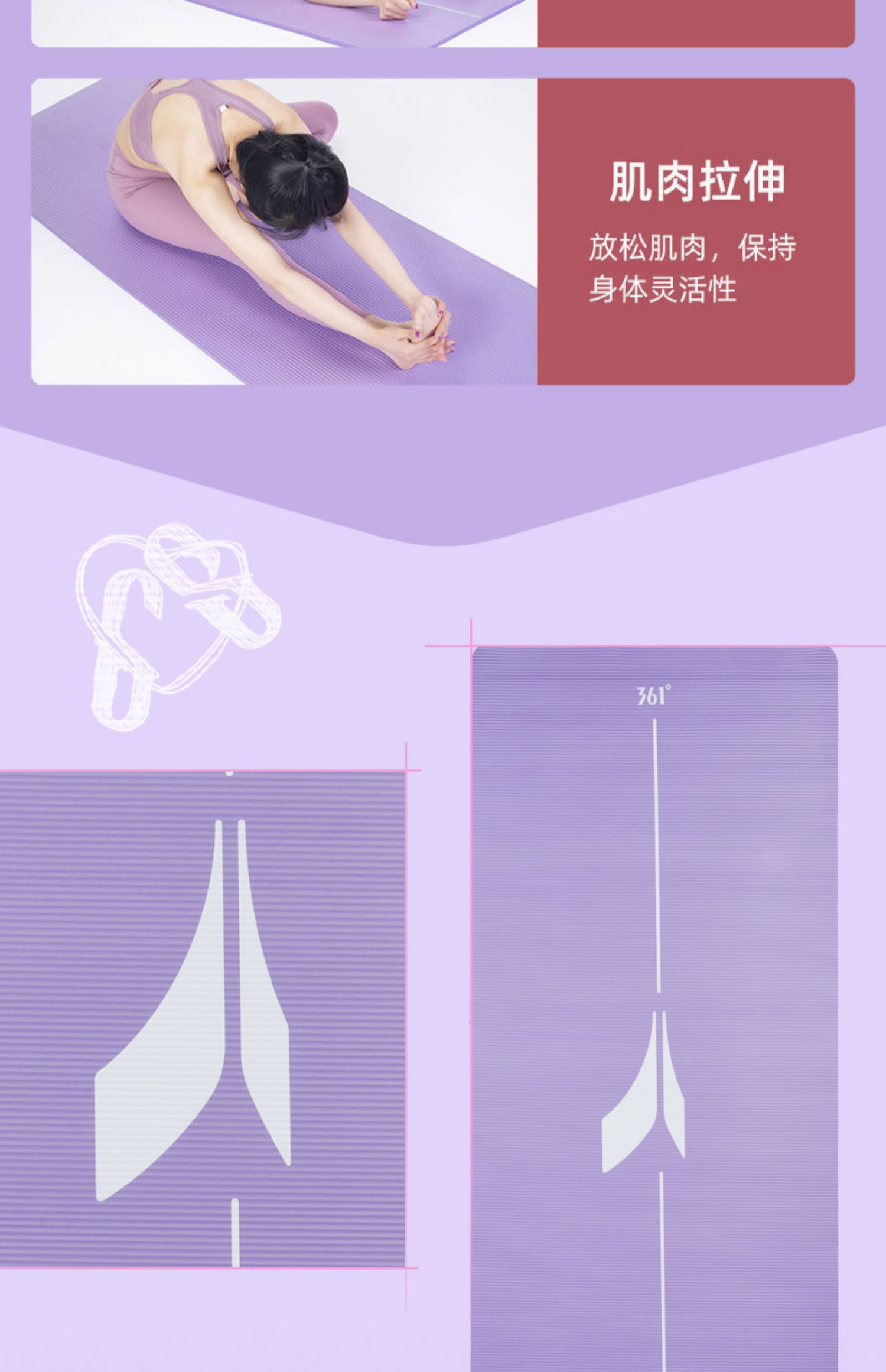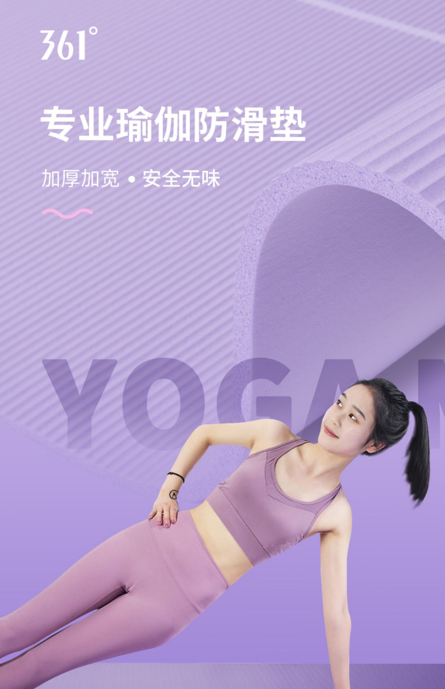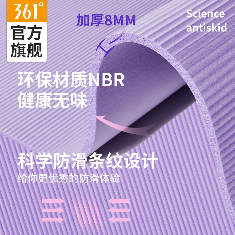 361°专业瑜伽垫加宽加厚安全无异味防滑条纹设计家用瑜珈健身垫