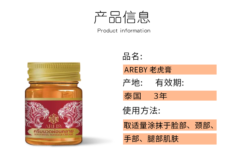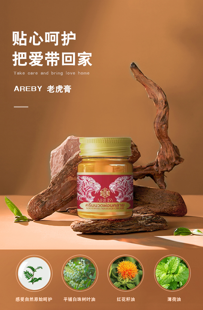 泰国进口AREBY老虎膏草本外用清凉油肩颈关节按摩活络舒缓膏