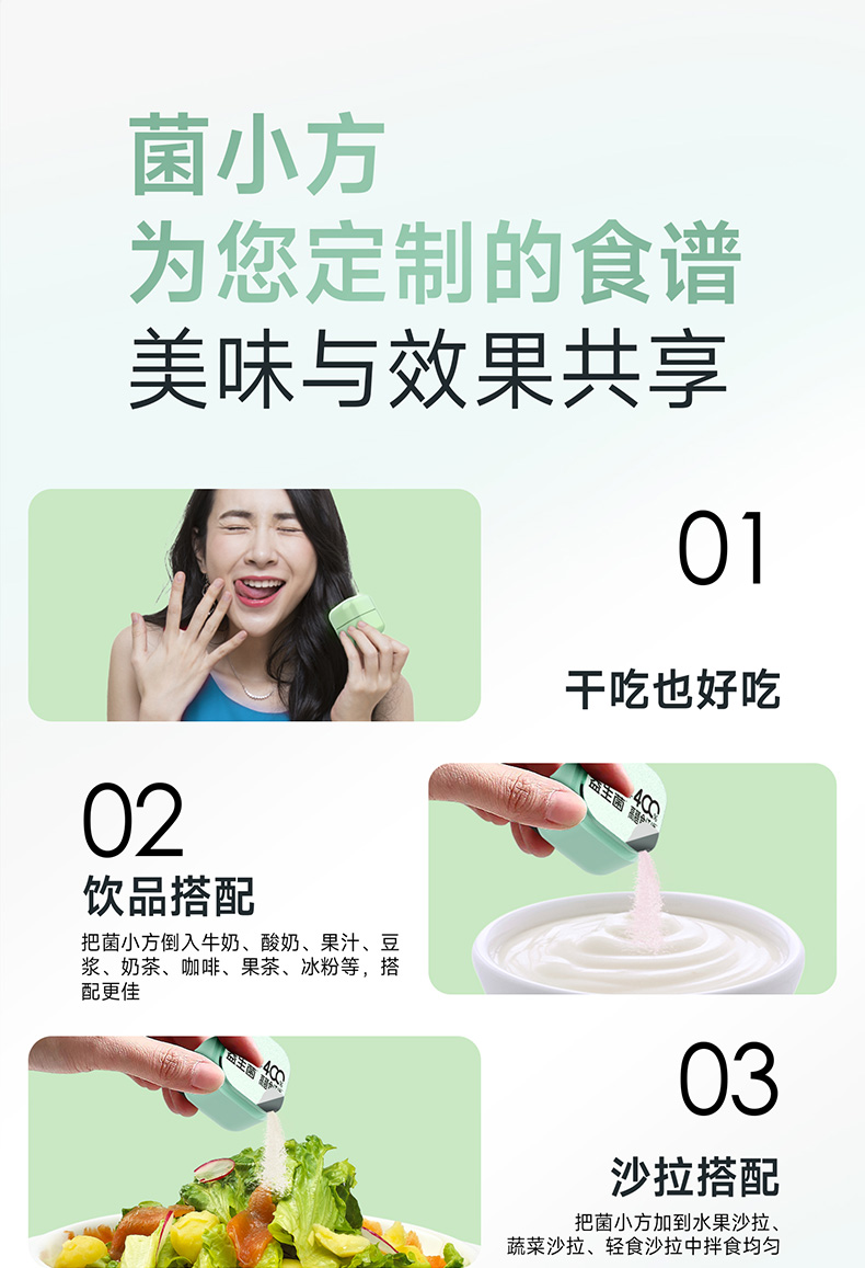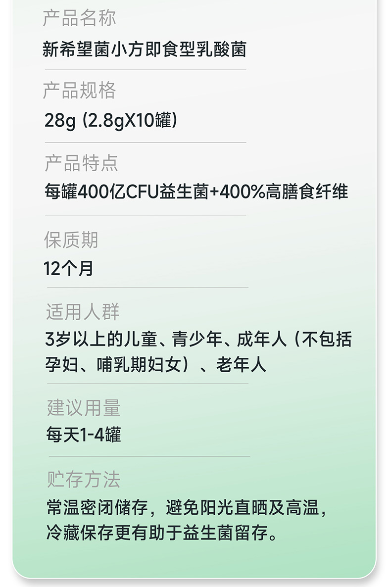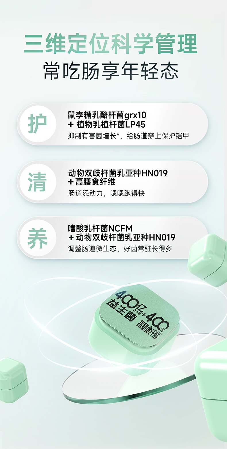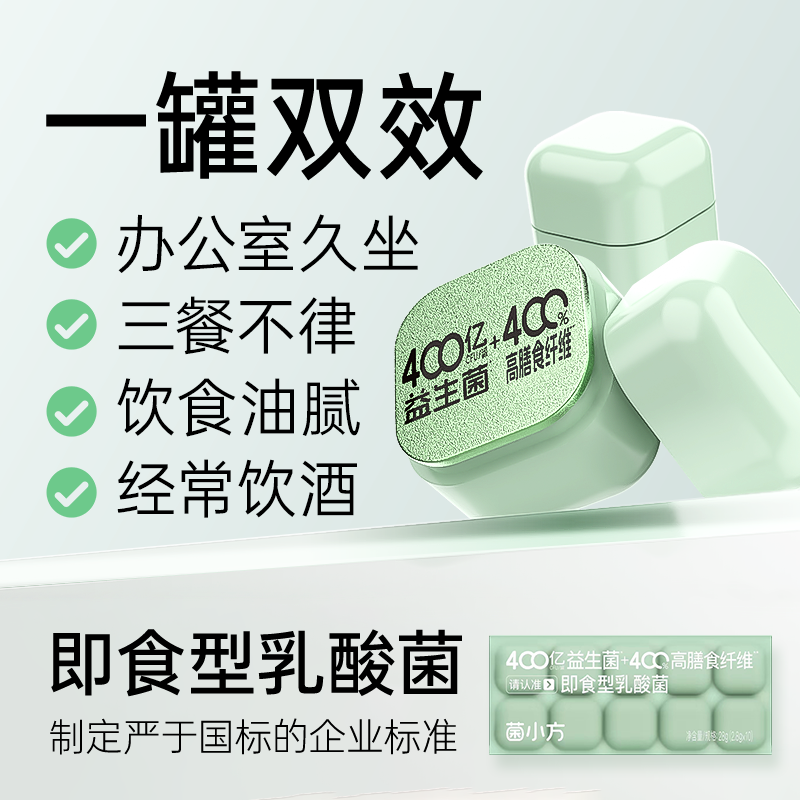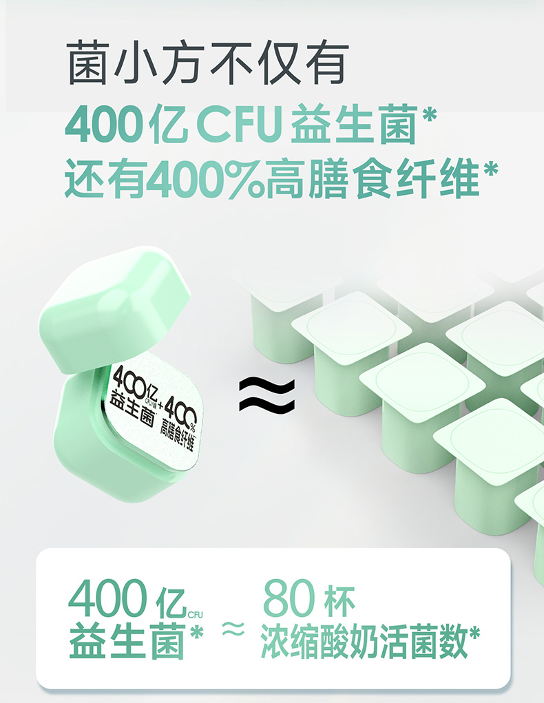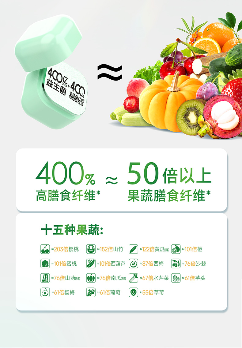 即食型乳酸菌。一罐双效,专注肠道改善+体重管理,每罐不仅有400亿CFU益生菌,还有400%高膳食纤维