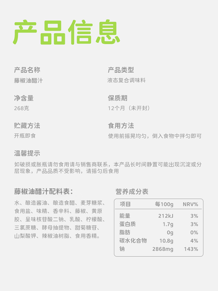 - ¥16.90【混搭两瓶】0脂油醋汁*1瓶+藤椒油醋汁*1瓶