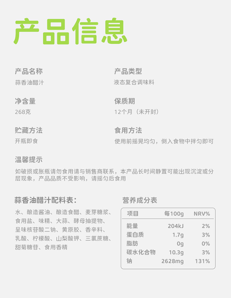 - ¥10.90【尝鲜装】蒜香油醋汁*1瓶