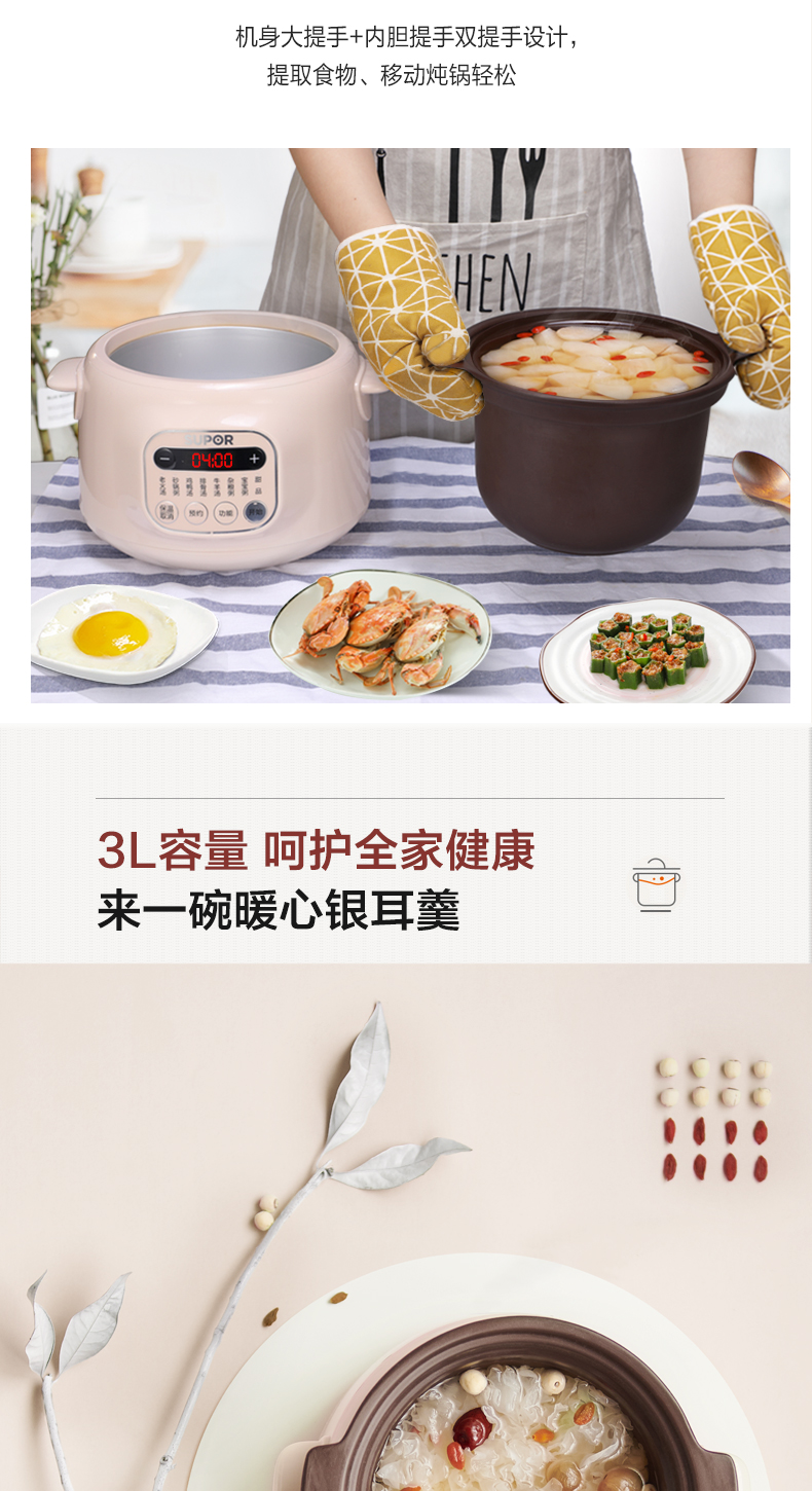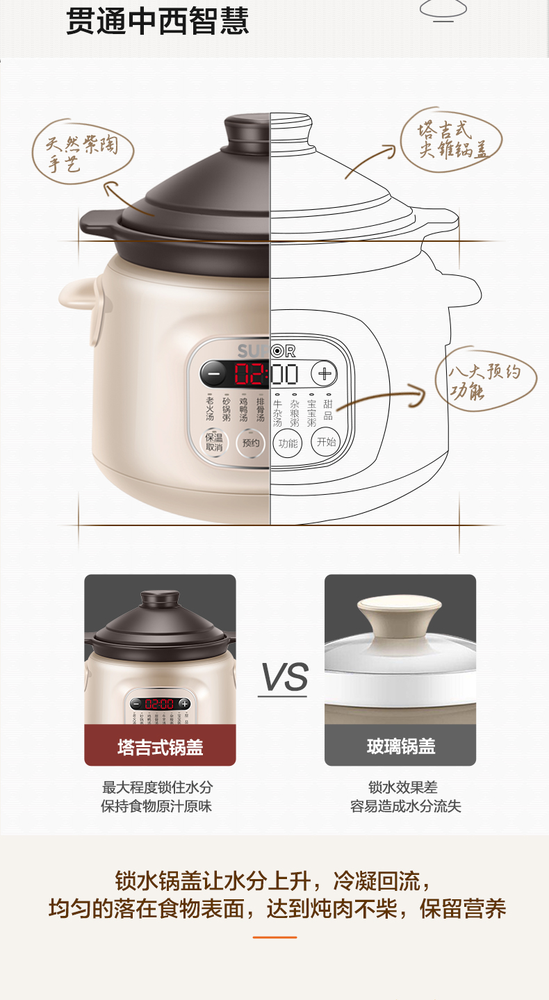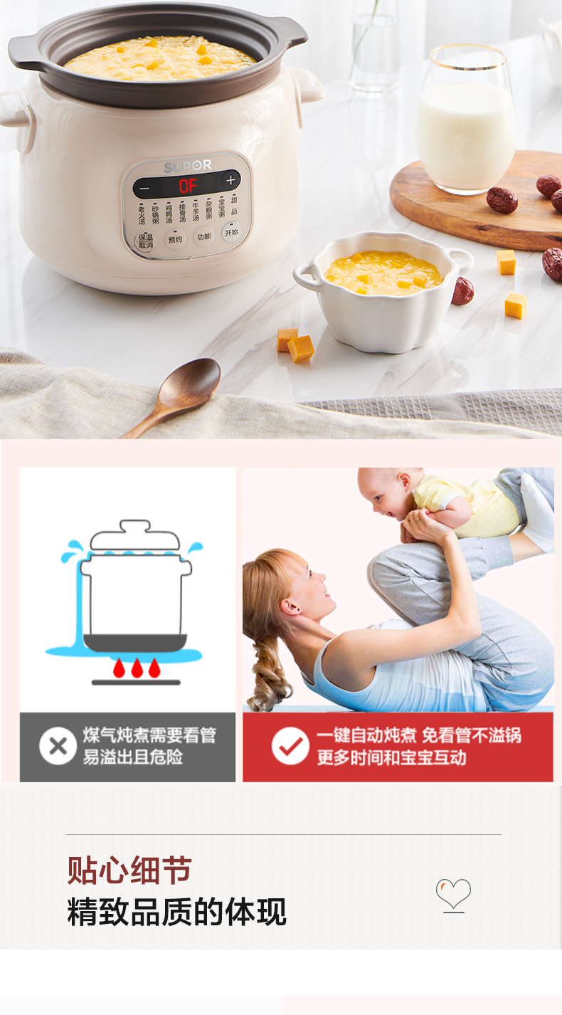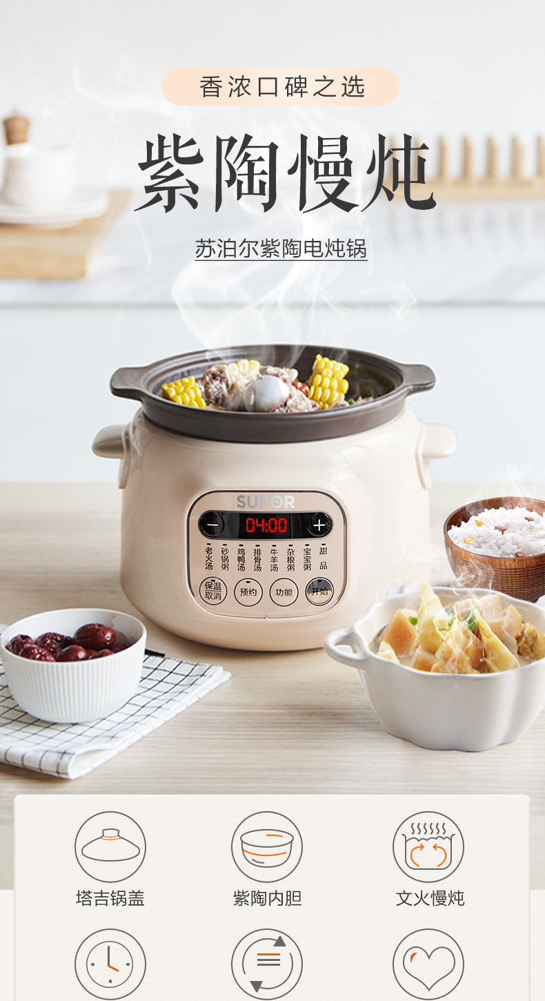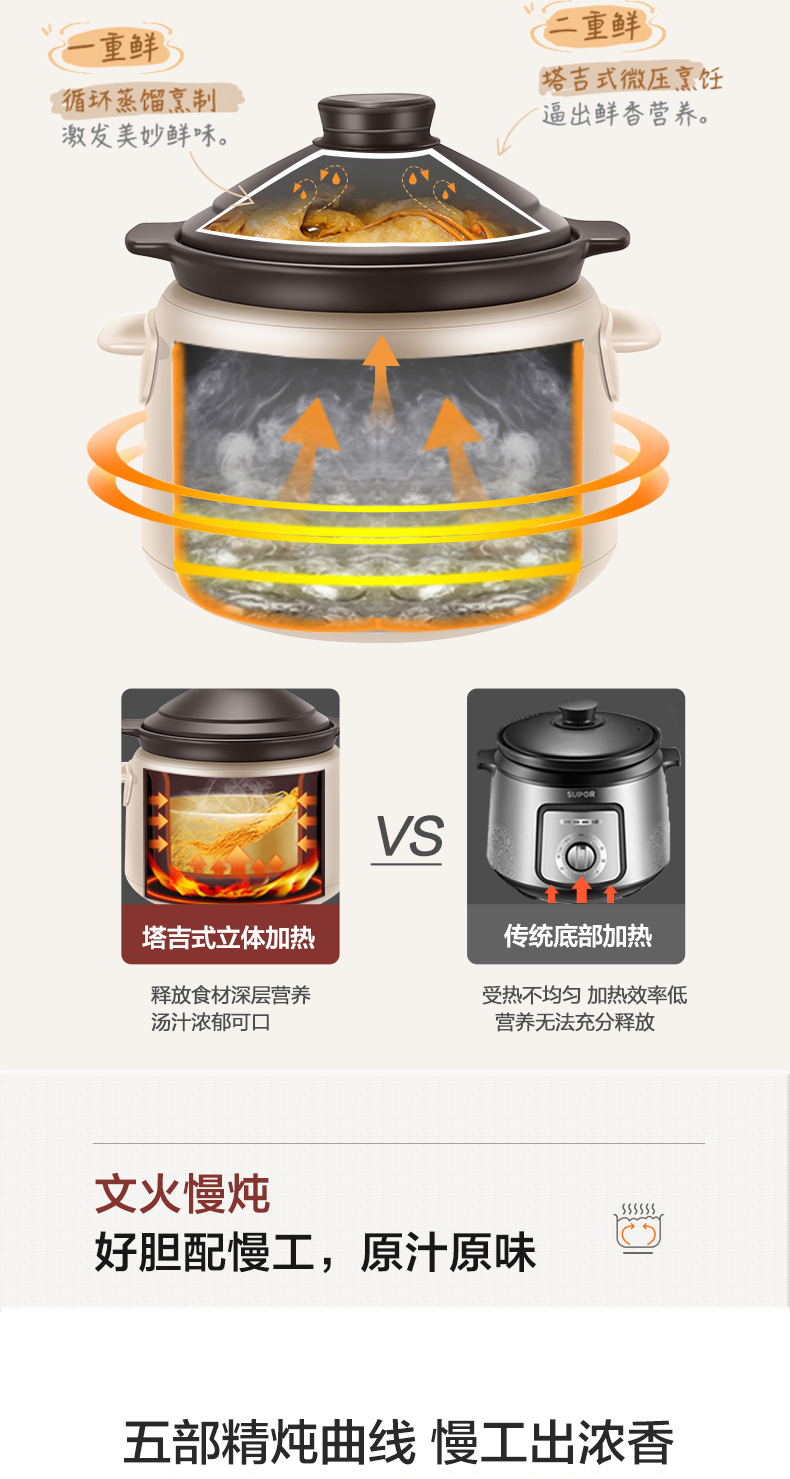 苏泊尔电炖锅紫陶瓷煲汤锅家用炖煮慢炖煮粥锅养生锅