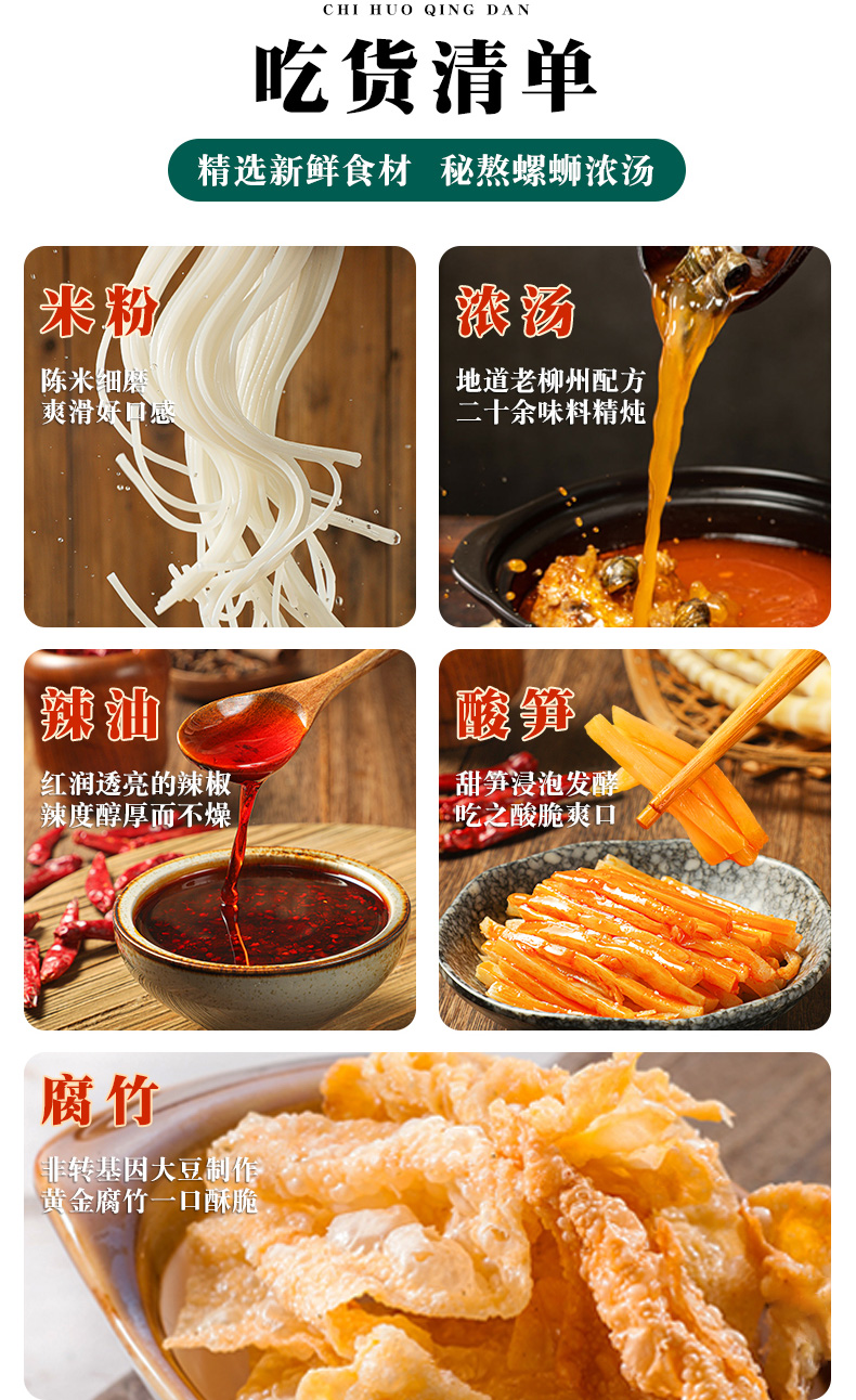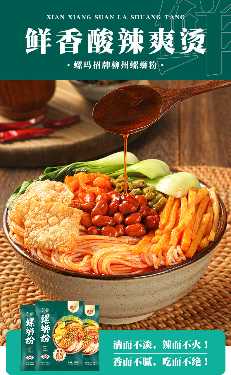 来自柳州原产地的正宗螺蛳粉,我们一直致力于做良心食品,遵循质量与安全为本的原则,原材料以柳州当地天然原料为主,保证还原柳州螺蛳粉鲜、酸、爽、辣、烫的源本滋味。