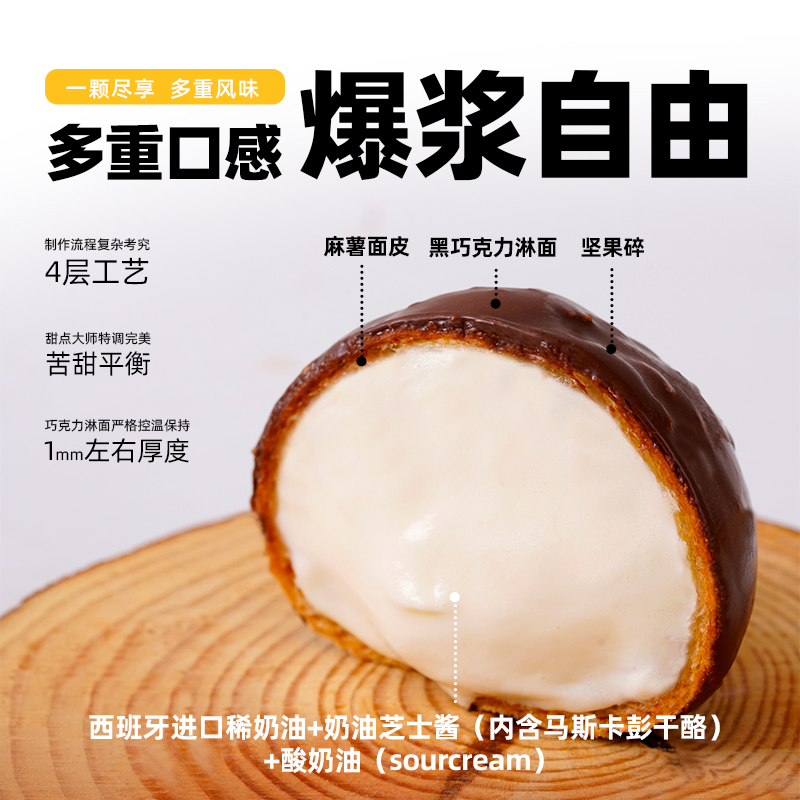 - ¥69.90 【黑白配】爆浆麻薯(梦龙巧克力味)300g*1盒+双莓波波爆浆麻薯300g*1盒