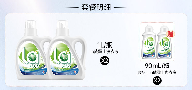 洗衣液1L*2瓶+旅行装内衣净90ml*2瓶