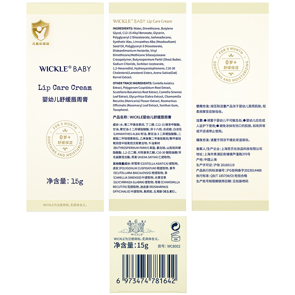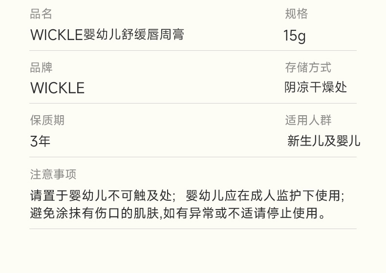 wickle舒缓唇周护理霜保湿口水膏婴儿润唇专用唇周膏面霜护肤组合