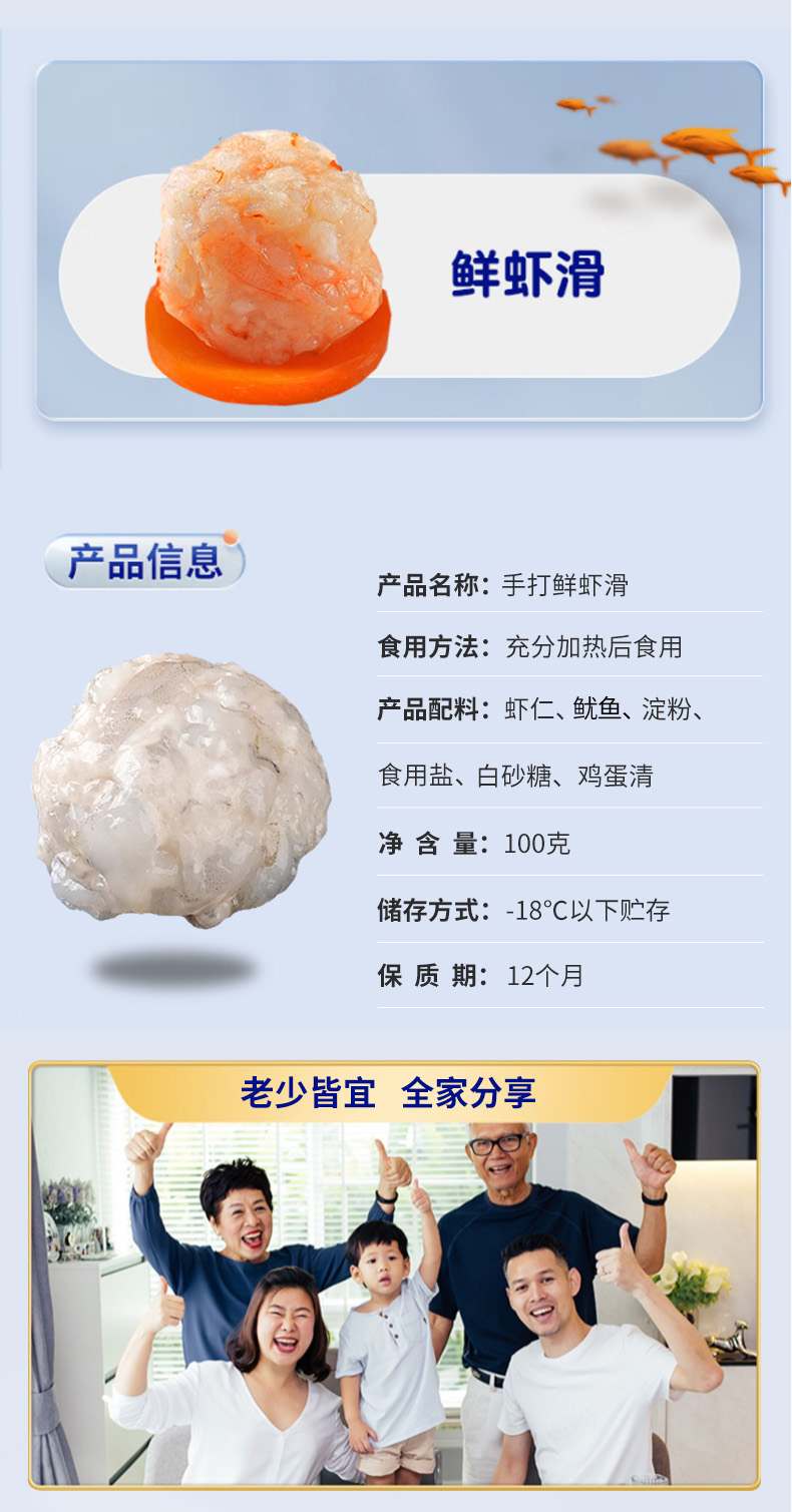 林阿姆手打虾滑净含量100g/包*11,鲜虾仁制作而成火锅神仙吃法