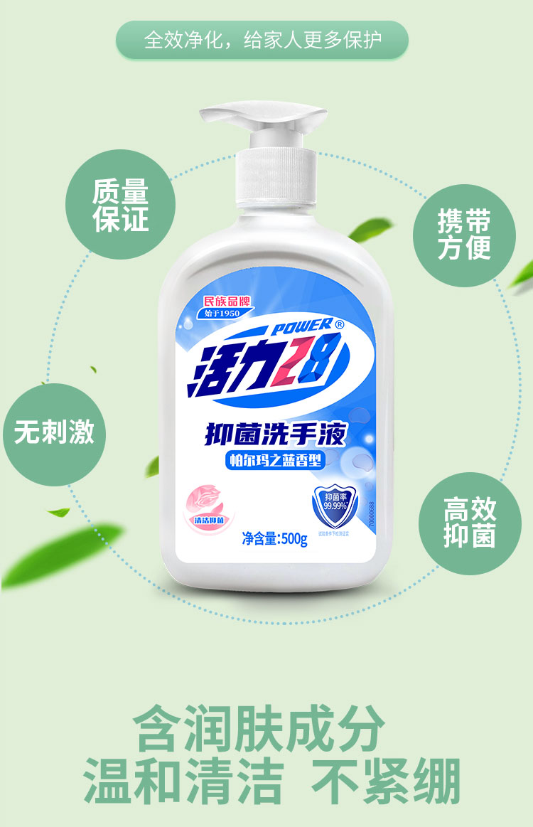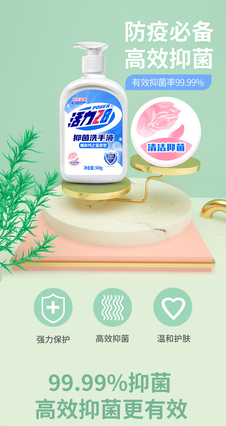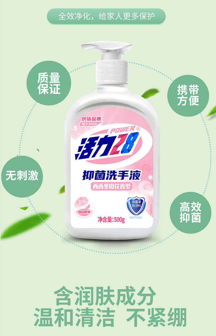 这款活力28抑菌洗手液非常好用,温和不伤手,清洁力强,清香的味道也很好闻。另外,帕尔马之蓝和西西里橙花洗手液也很棒,同样具有温和的清洁力和清香的味道