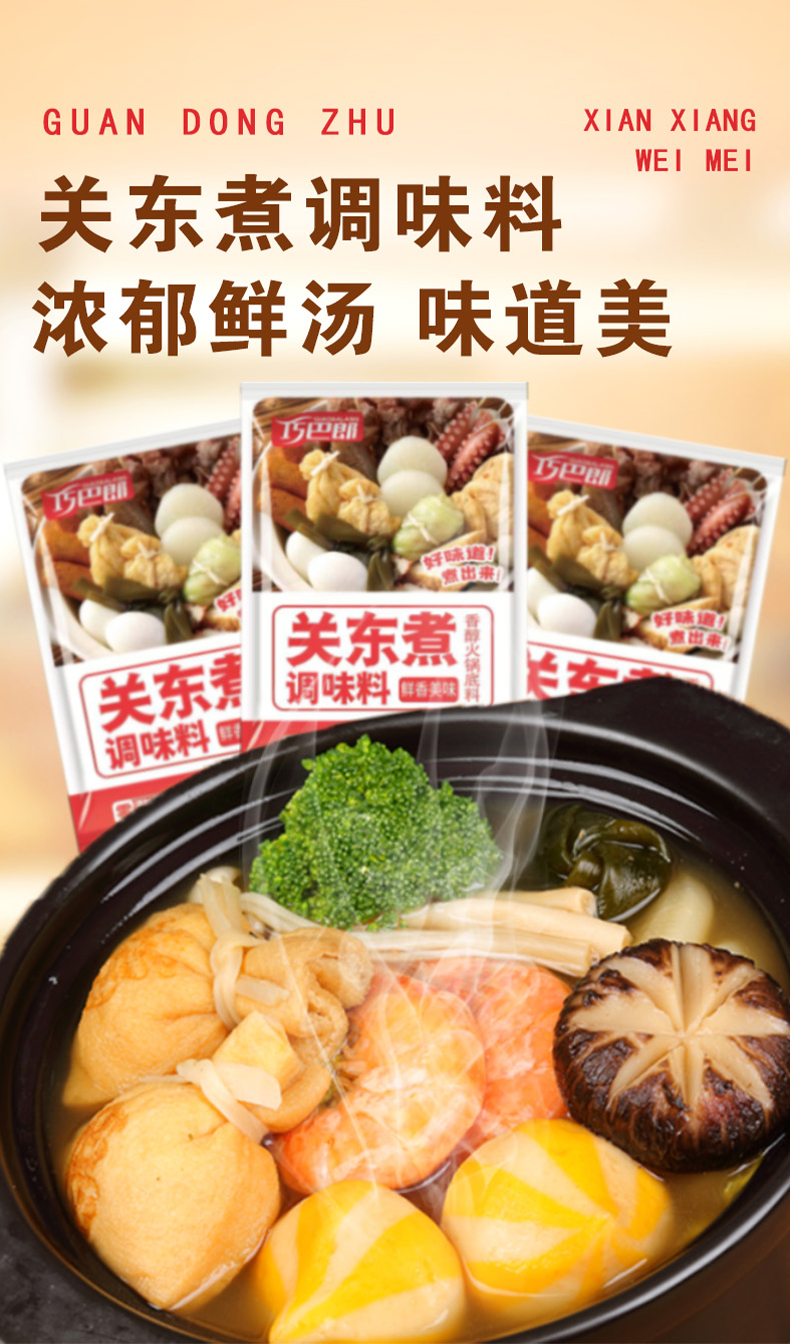 2. 这款关东煮调料真的很不错,价格实惠,而且送得多,可以满足一个月的需求。味道鲜美,非常适合做关东煮。不过,如果能够有赠品就更好了。