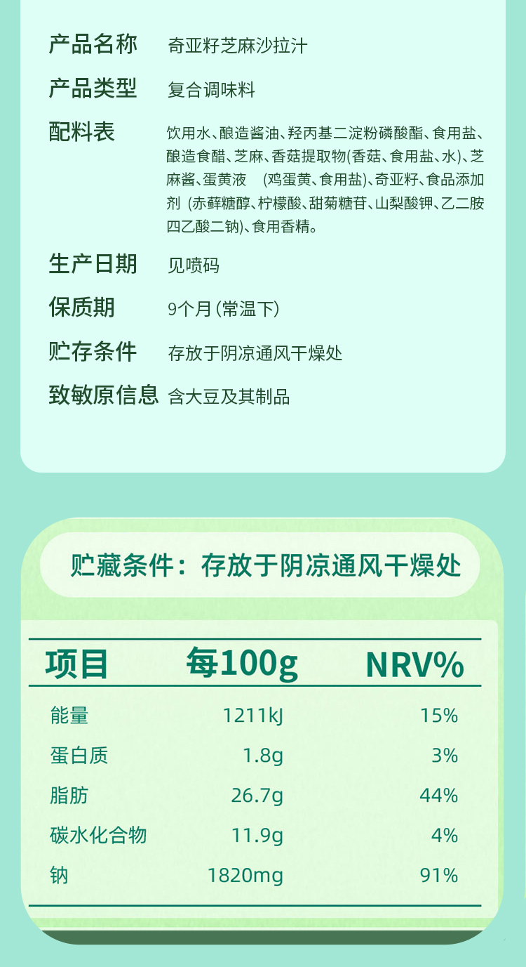 奇亚籽沙拉汁(贵在运费,bu划算)180g*1瓶