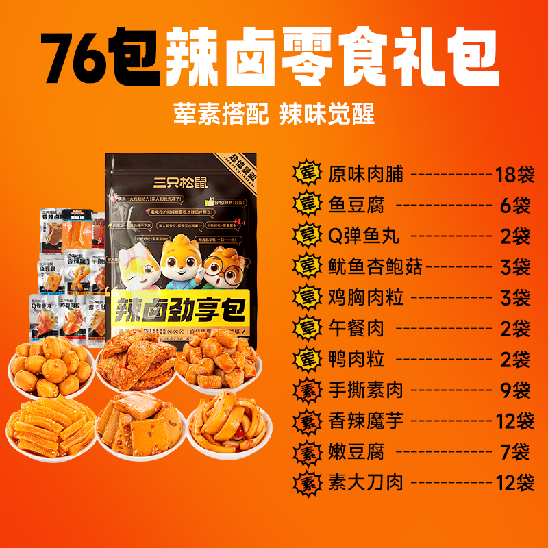 三只松鼠的辣卤大礼包真的很棒!70小袋的容量,抖超发货次日达