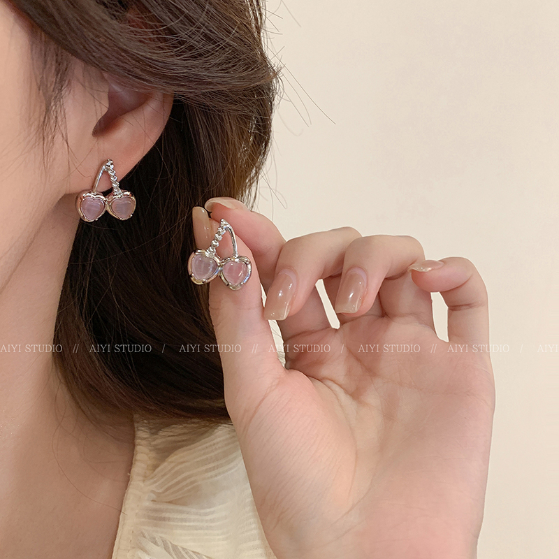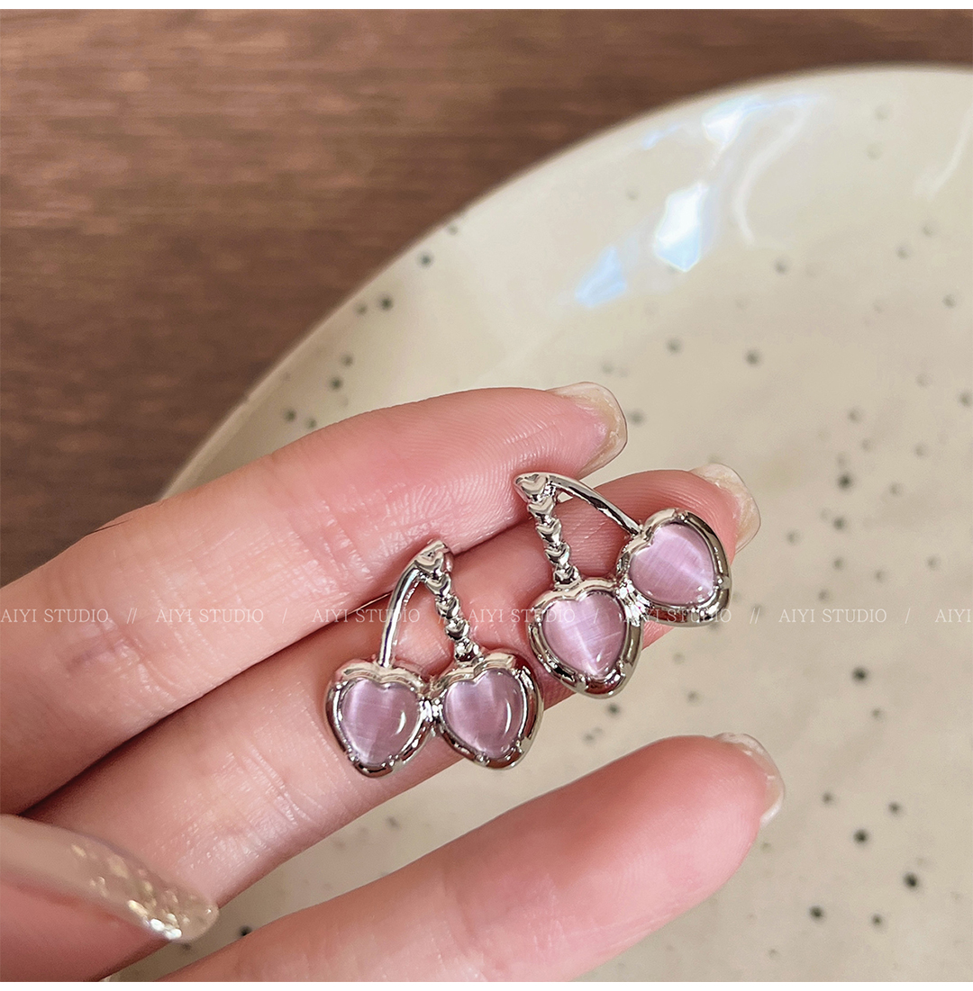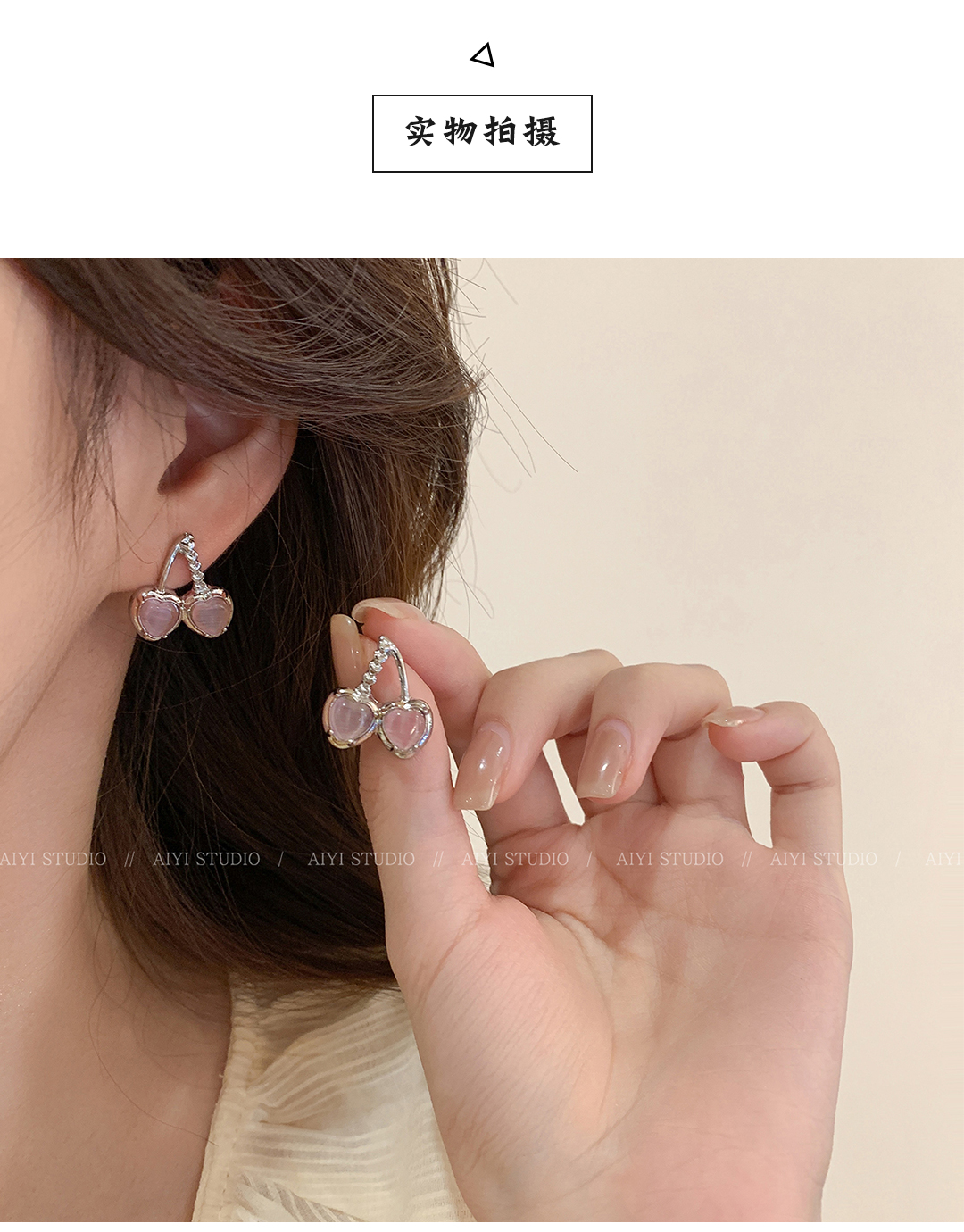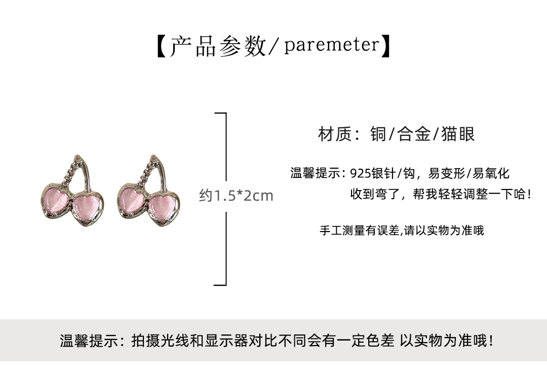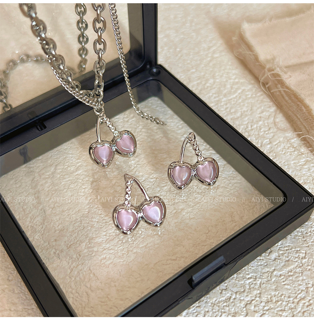 合金项链 粉色樱桃珠珠拼接颈链女春夏流苏小众高级感锁骨链配饰~