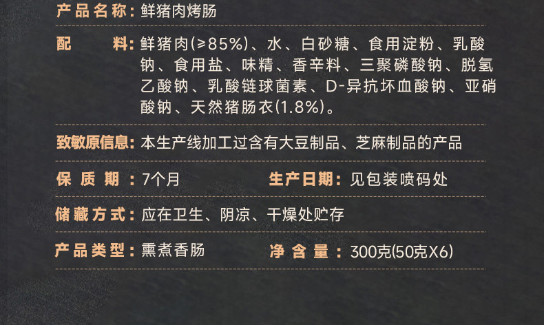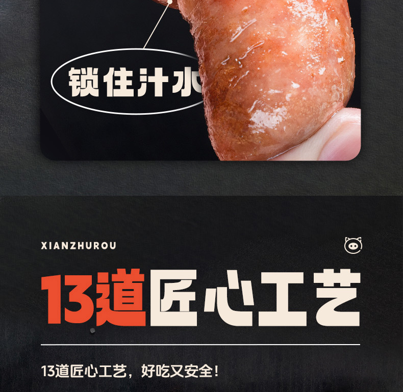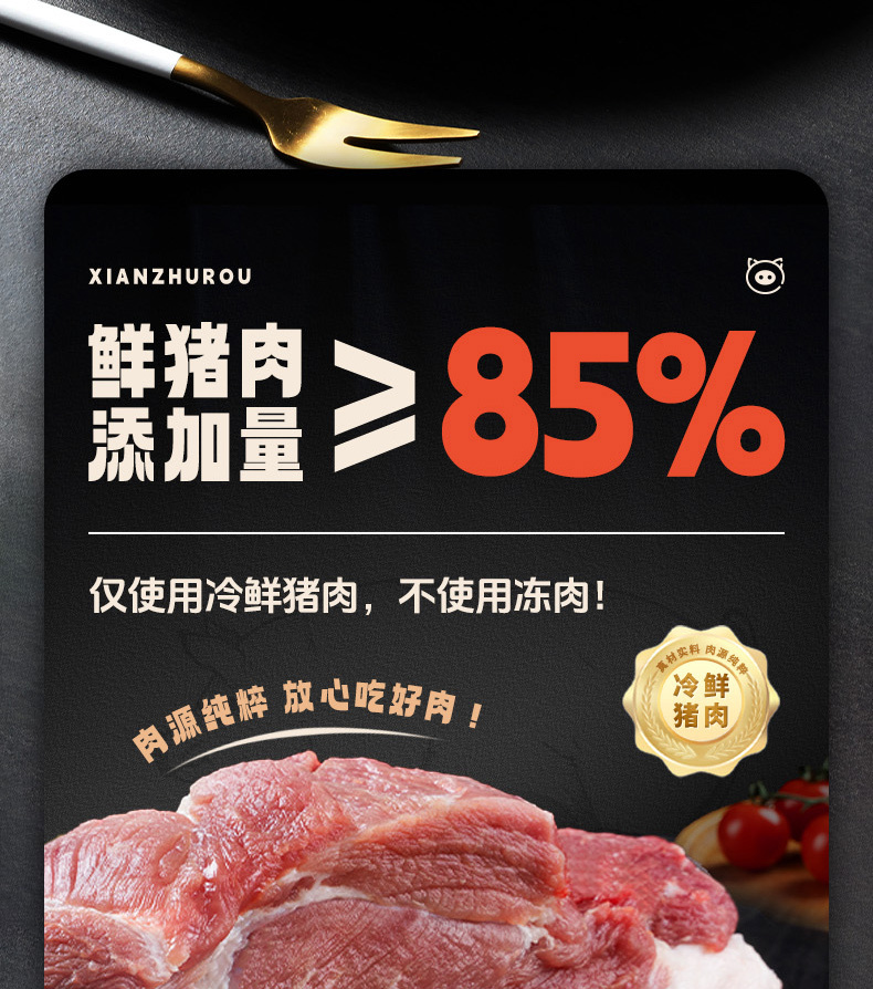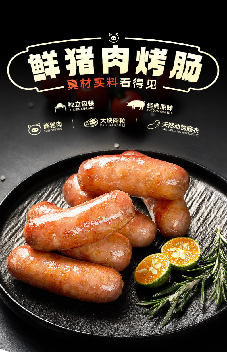 【白象】鲜猪肉烤肠皮脆肉香85%含肉量美味好吃即食多汁匠心zb