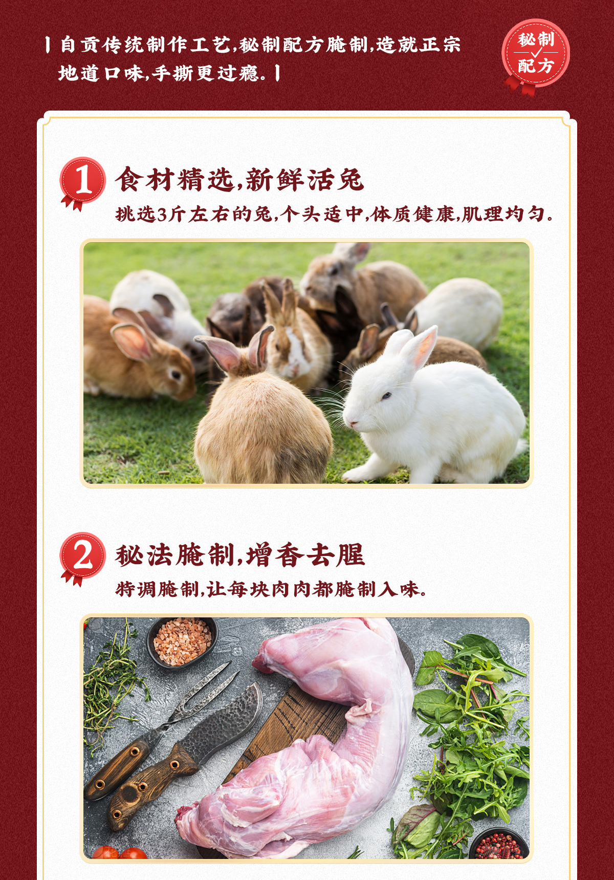 2. 这是我第一次尝试四川手撕兔,真的非常惊艳!兔肉非常新鲜,口感鲜嫩,麻辣味道也刚刚好,不会太辣也不会太麻,非常适合我。而且开袋即食非常方便,我可以在家里随时享用美食了。