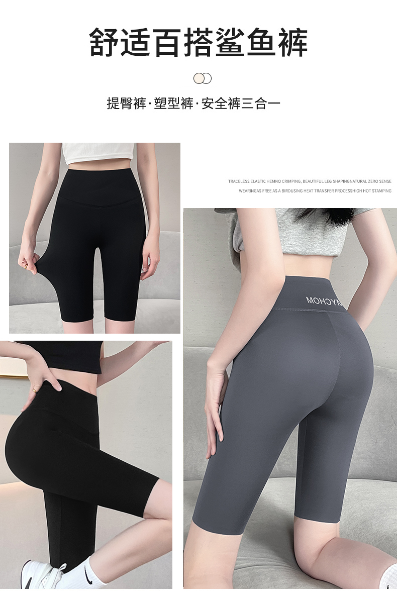 运动无痕紧身五分鲨鱼裤女外穿收腹提臀骑行瑜伽打底短裤显瘦