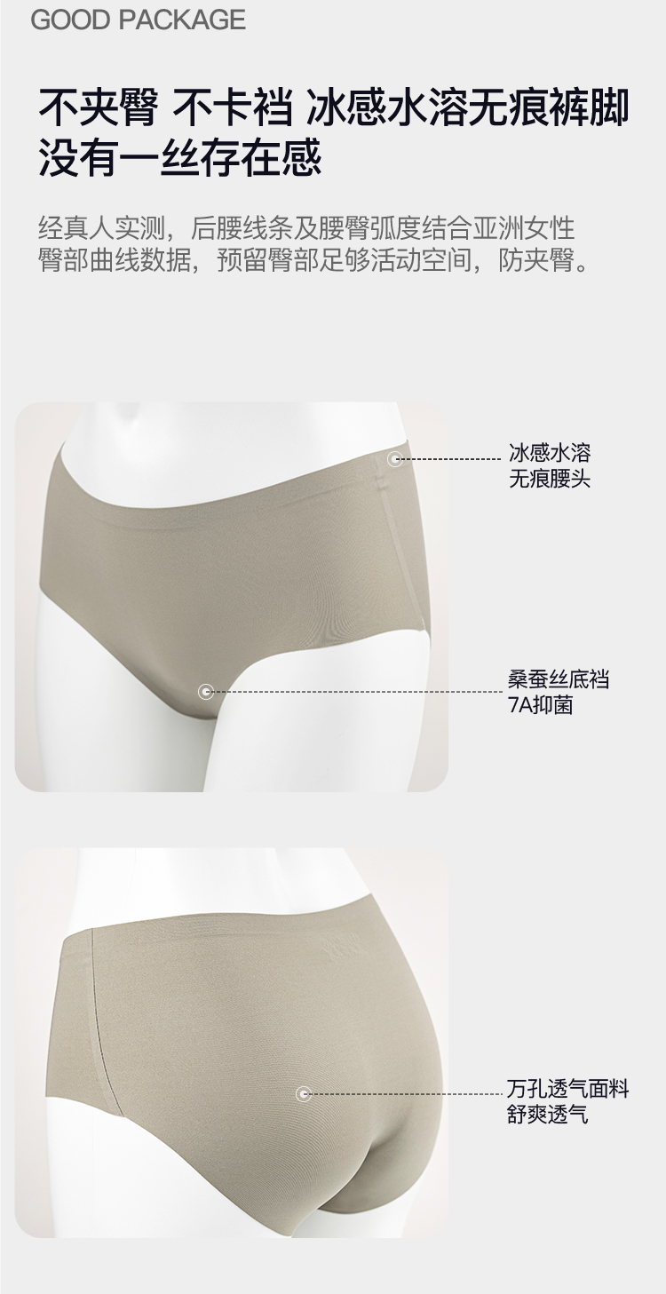 欧若风夏季爆款超薄无痕7A抗菌桑蚕丝女士内裤