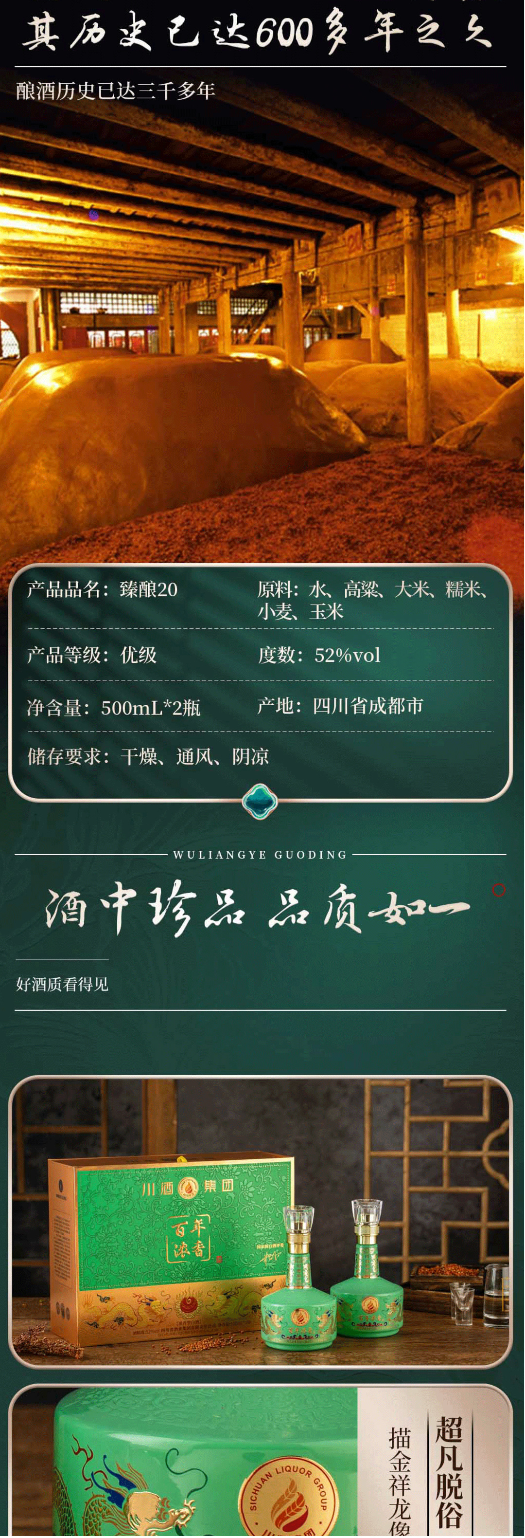 百年臻酿20 盒装2瓶52度500ml