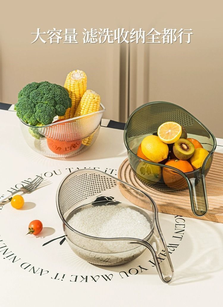 - ¥9.90灰色【送不粘饭勺】多功能洗菜淘米篮,一个淘米篮+一个饭勺 仅需9.9元