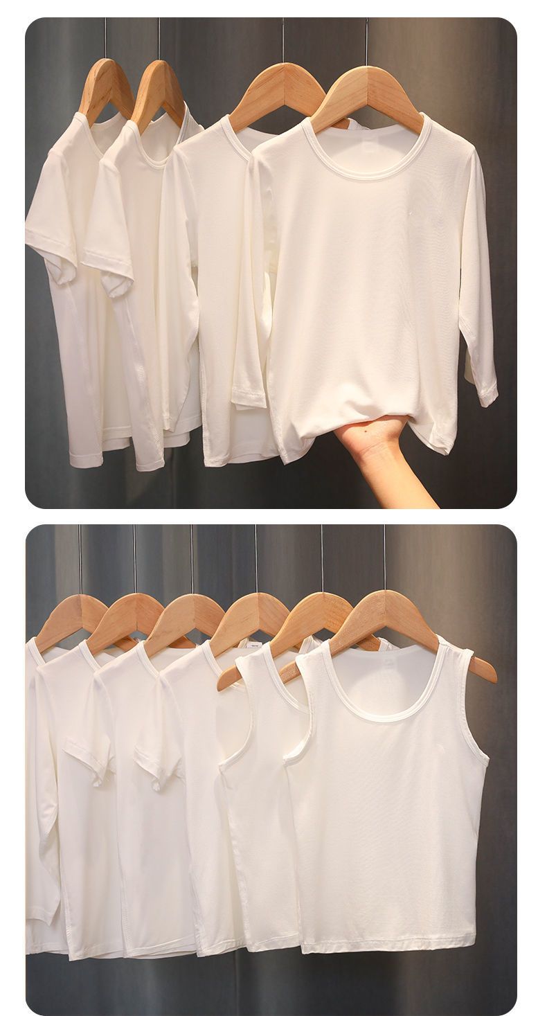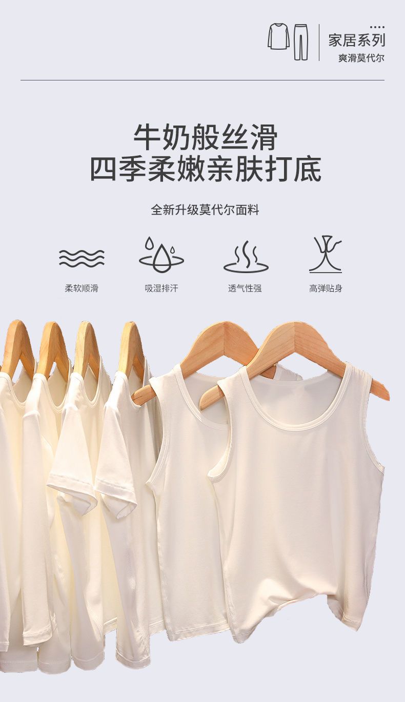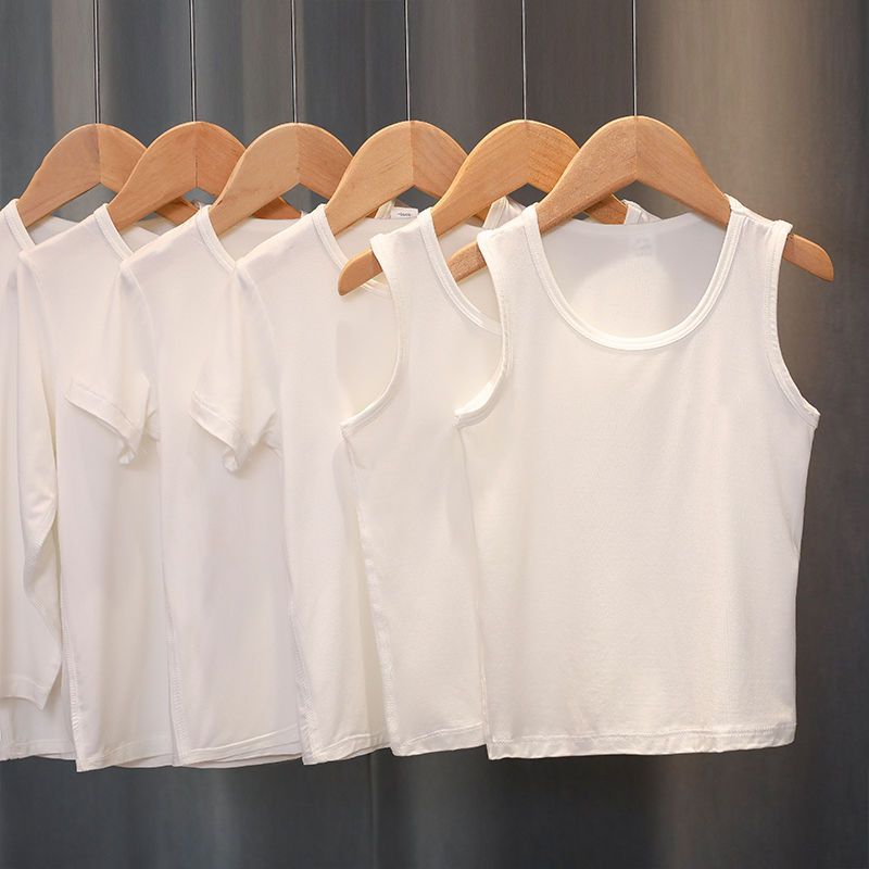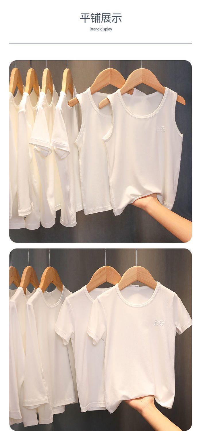 儿童背心莫代尔棉薄男孩纯白色内衣T恤夏季打底内穿运动洋气
