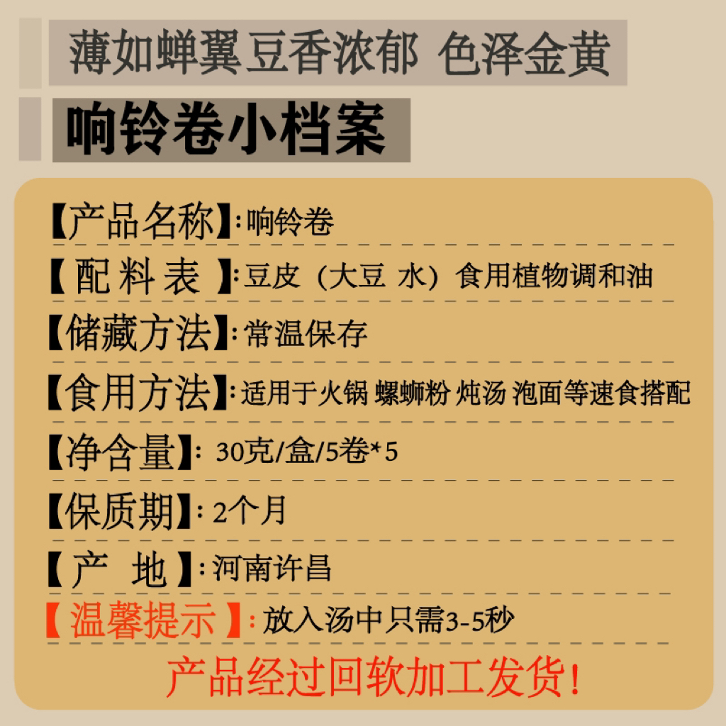 【5包/25卷】火锅食材响铃卷麻辣烫麻辣拌螺蛳粉伴侣