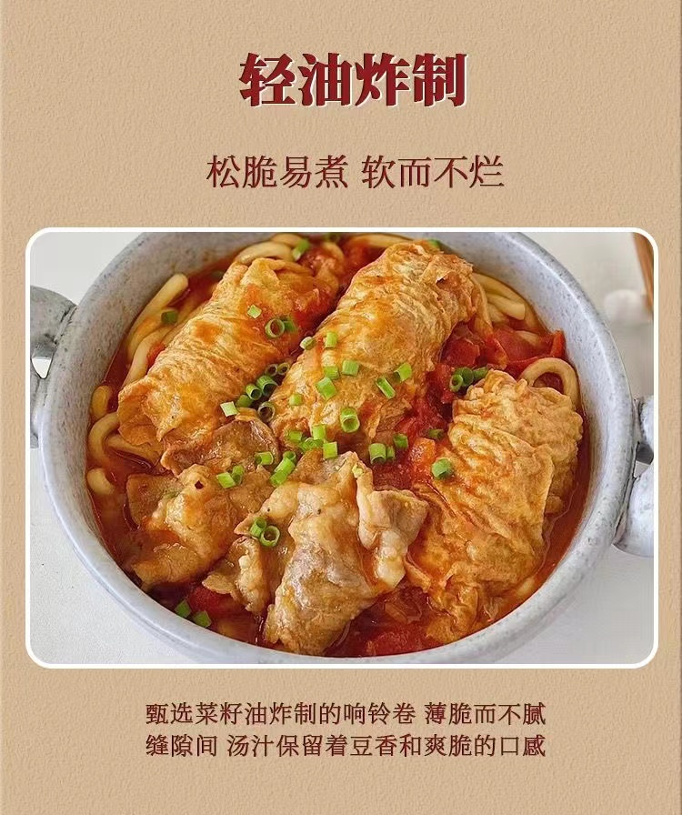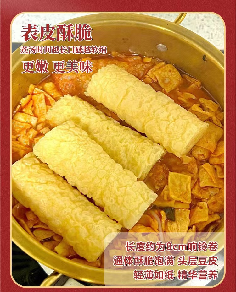 价格超值!这价格真的很棒,但品质也没有任何的折扣。响铃卷的味道鲜美,无论是搭配火锅、麻辣烫、麻辣拌还是螺蛳粉,都非常合适。