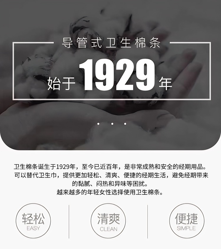 2. 第一次尝试使用卫生棉条,选择了这款产品,使用起来非常方便,完全不会弄脏衣服,非常适合我这种不喜欢弄脏衣物的人。