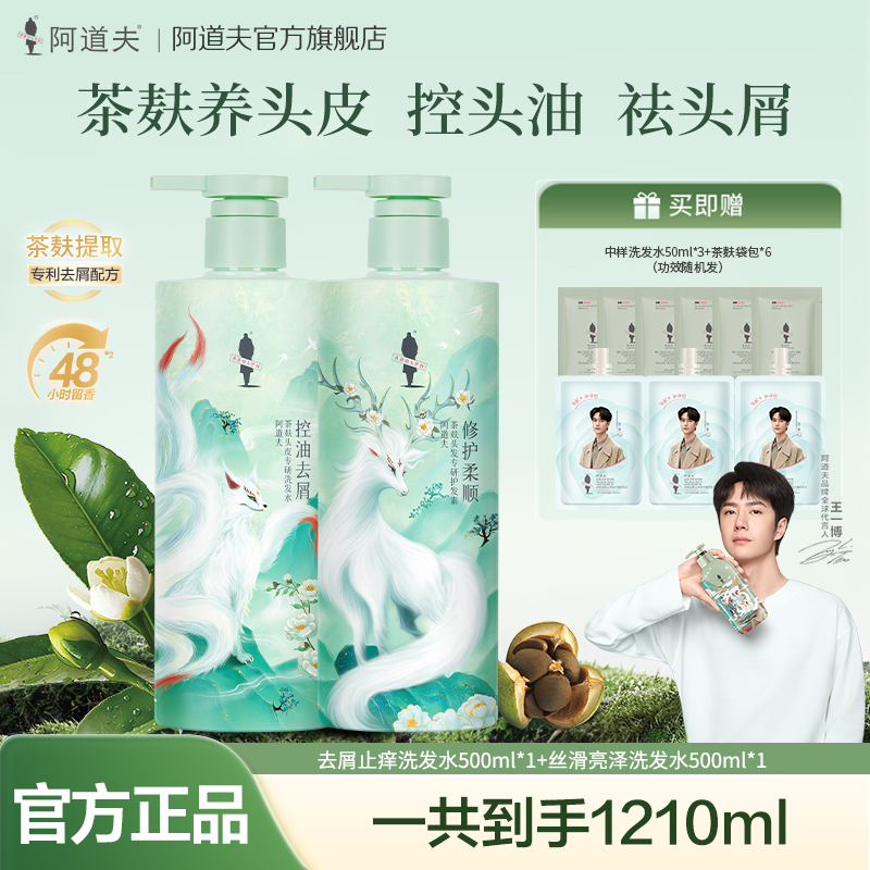 - ¥99.00 茶麸去屑止痒洗发水500ml*1瓶+茶麸丝滑亮泽洗发水500ml*1瓶(赠洗发旅行装)