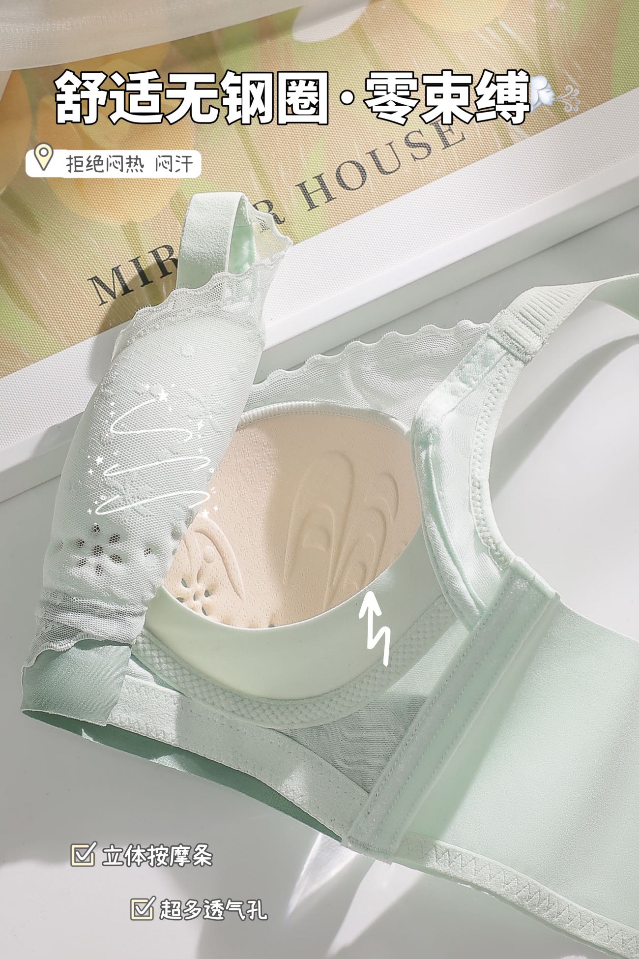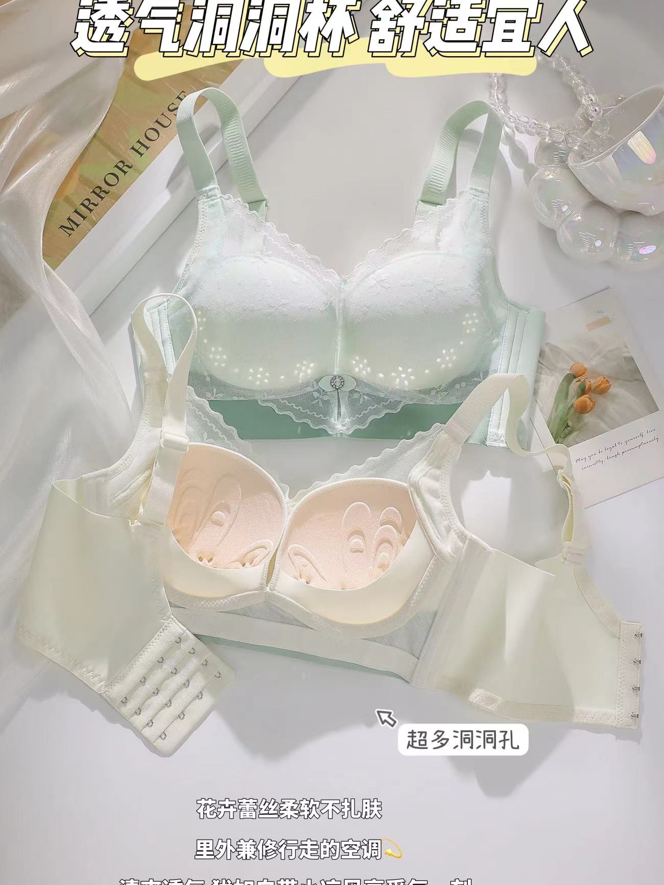 一款乳胶洞洞杯女士无钢圈调整型聚拢文胸内衣,有多个尺码和颜色可供选择,适合不同体重范围的女性。