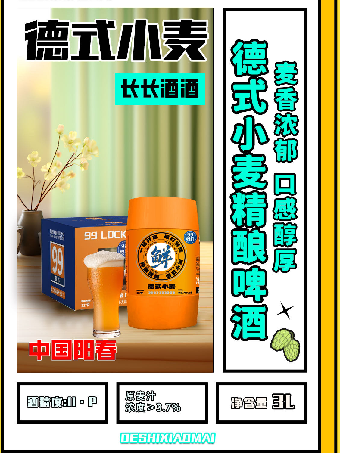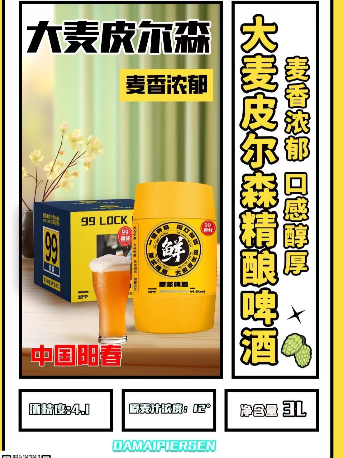 【3L锁鲜桶】99天锁鲜3L桶精酿鲜啤酒大麦皮尔森原浆3L德式小麦啤酒
