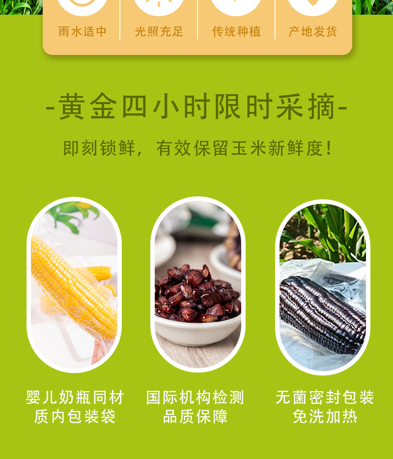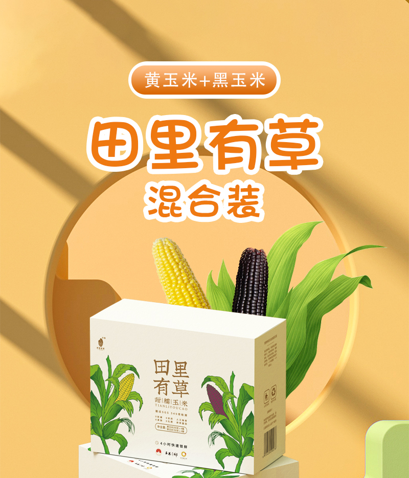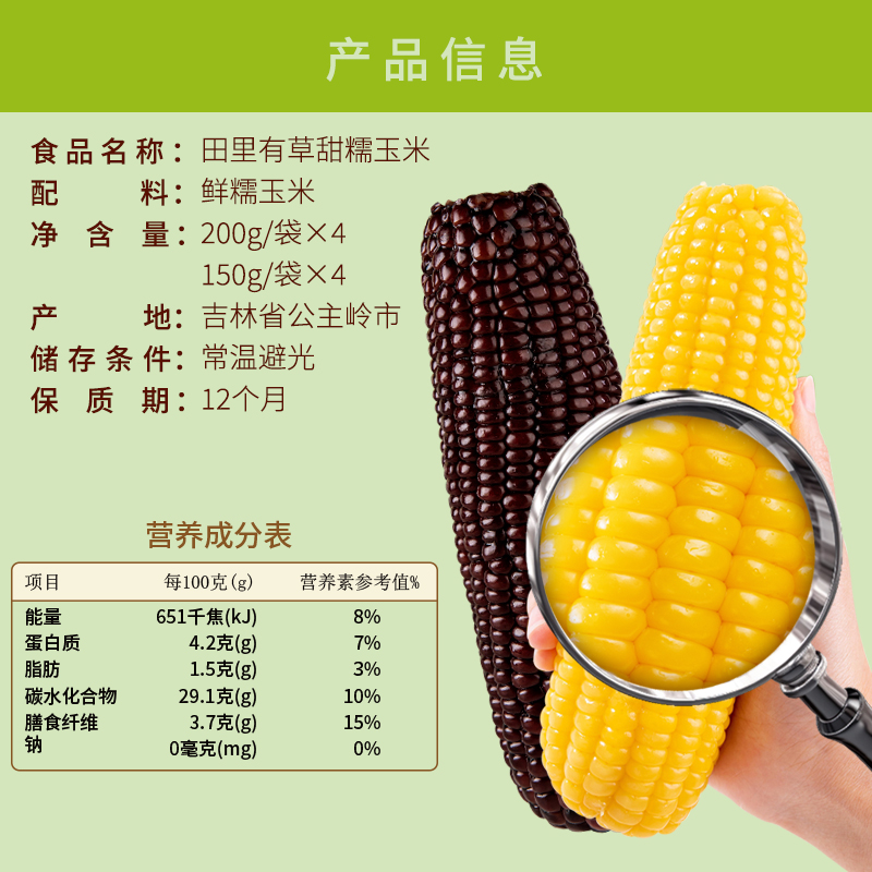 【田里有草】甜糯玉米(150g+200g)×4根混合装粗粮真空包装早餐