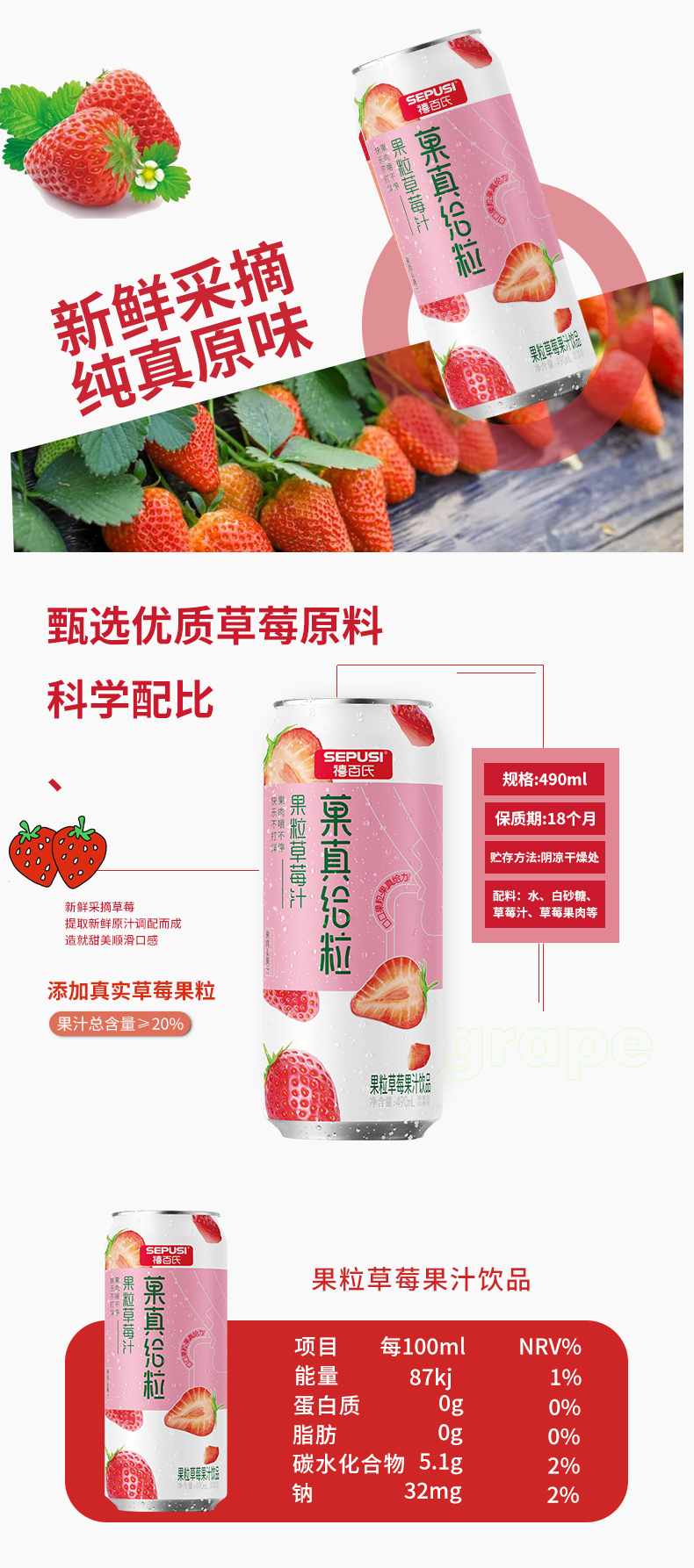 - ¥79.90 490ml*15罐,果肉果汁草莓味