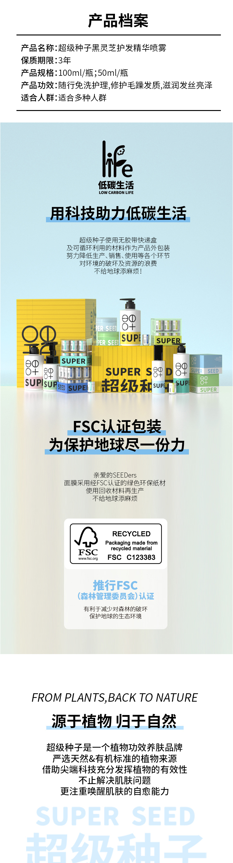 【改善毛躁打结】超级种子黑灵芝免洗护发精华喷雾不黏腻护发喷雾
