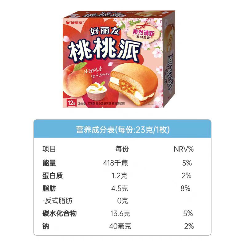 好丽友桃桃酸奶派清新限定下午茶夹心小蛋糕解馋零食早餐DR