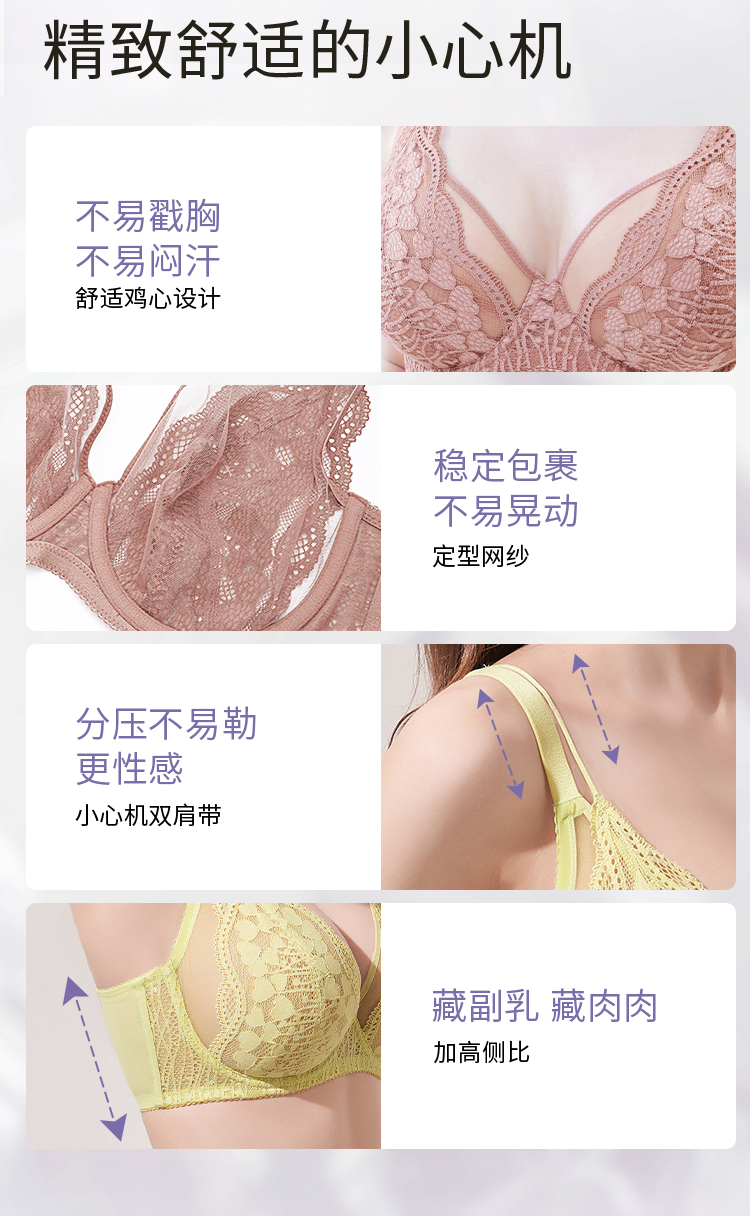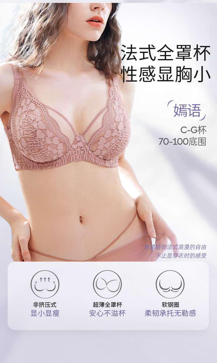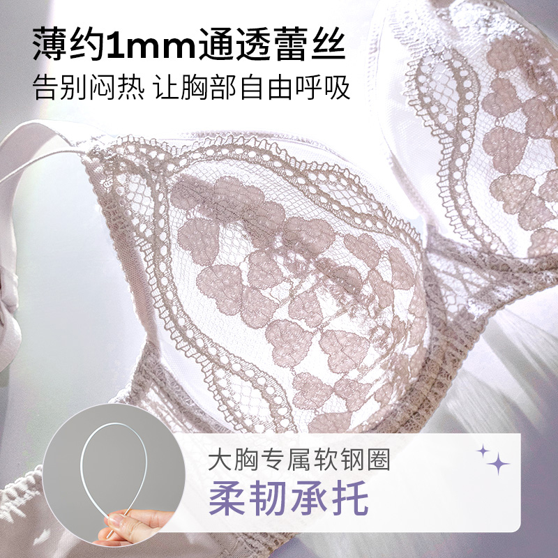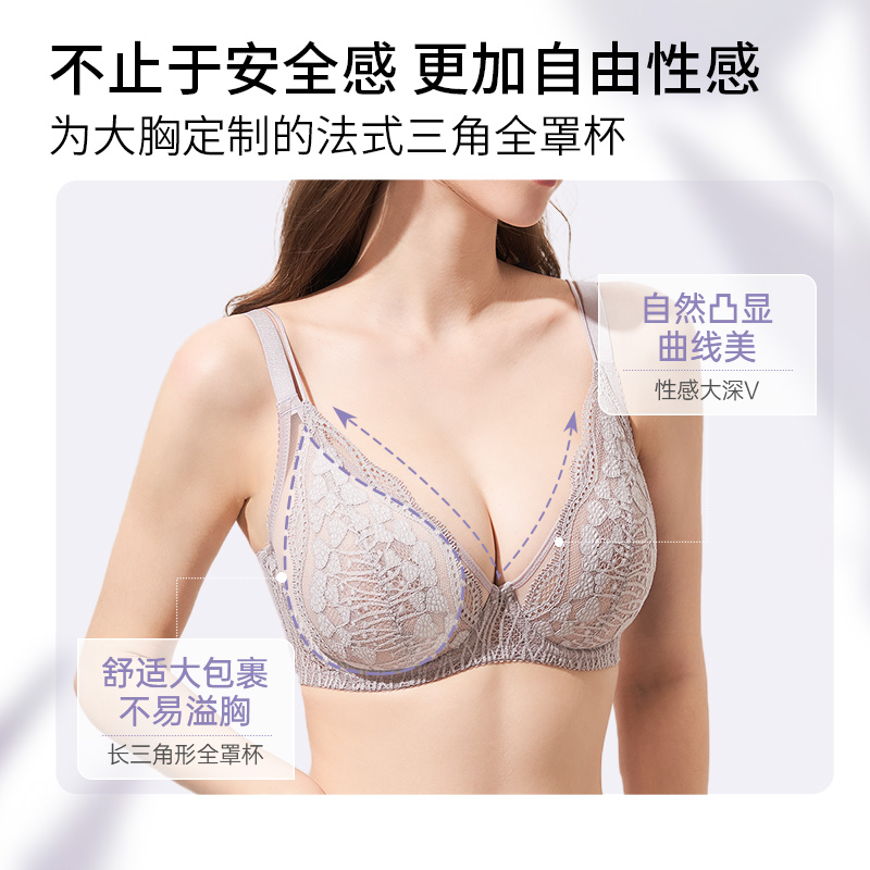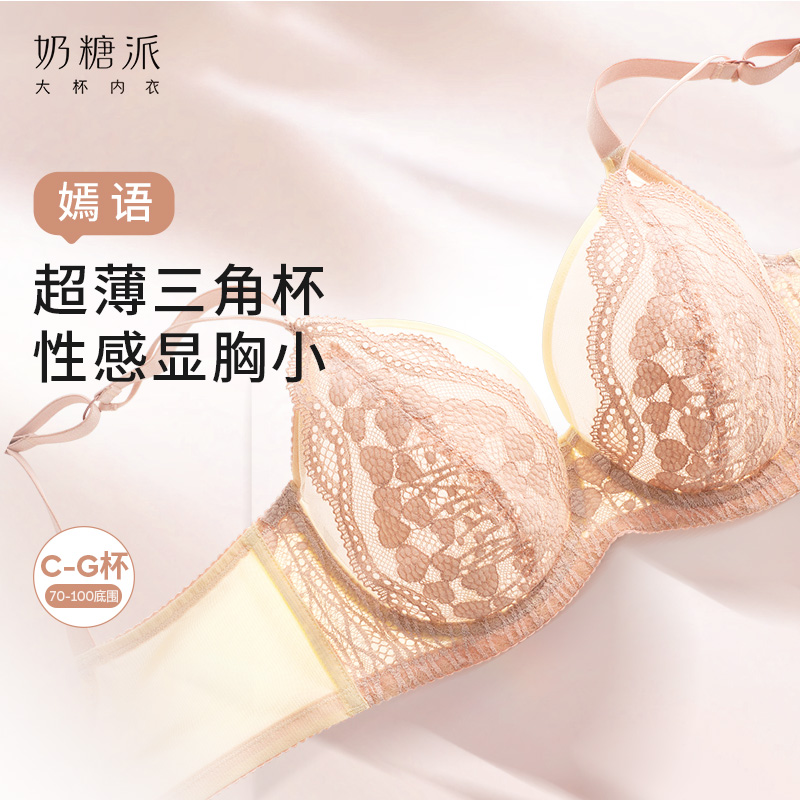 奶糖派【嫣语】大胸显小修容杯性感法式全罩杯文胸薄款蕾丝透气舒适