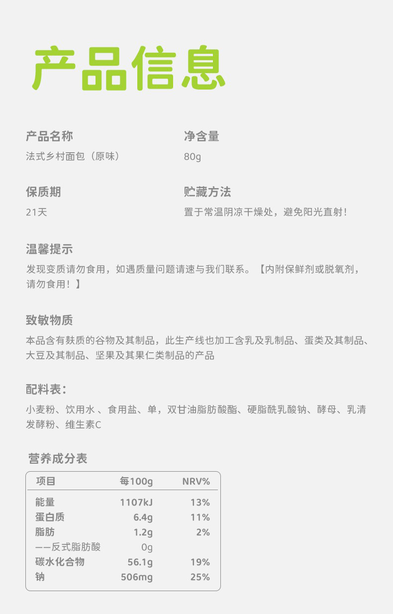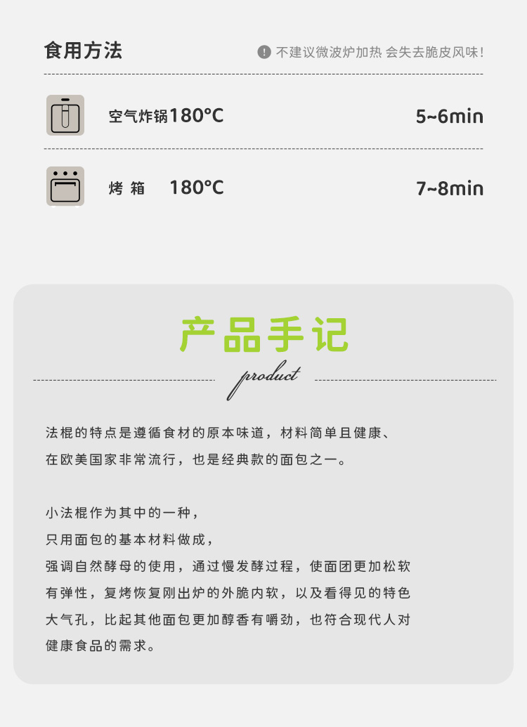 【田园主义】原味小法棍80g*10只法式乡村面包健身期无防腐剂硬欧包