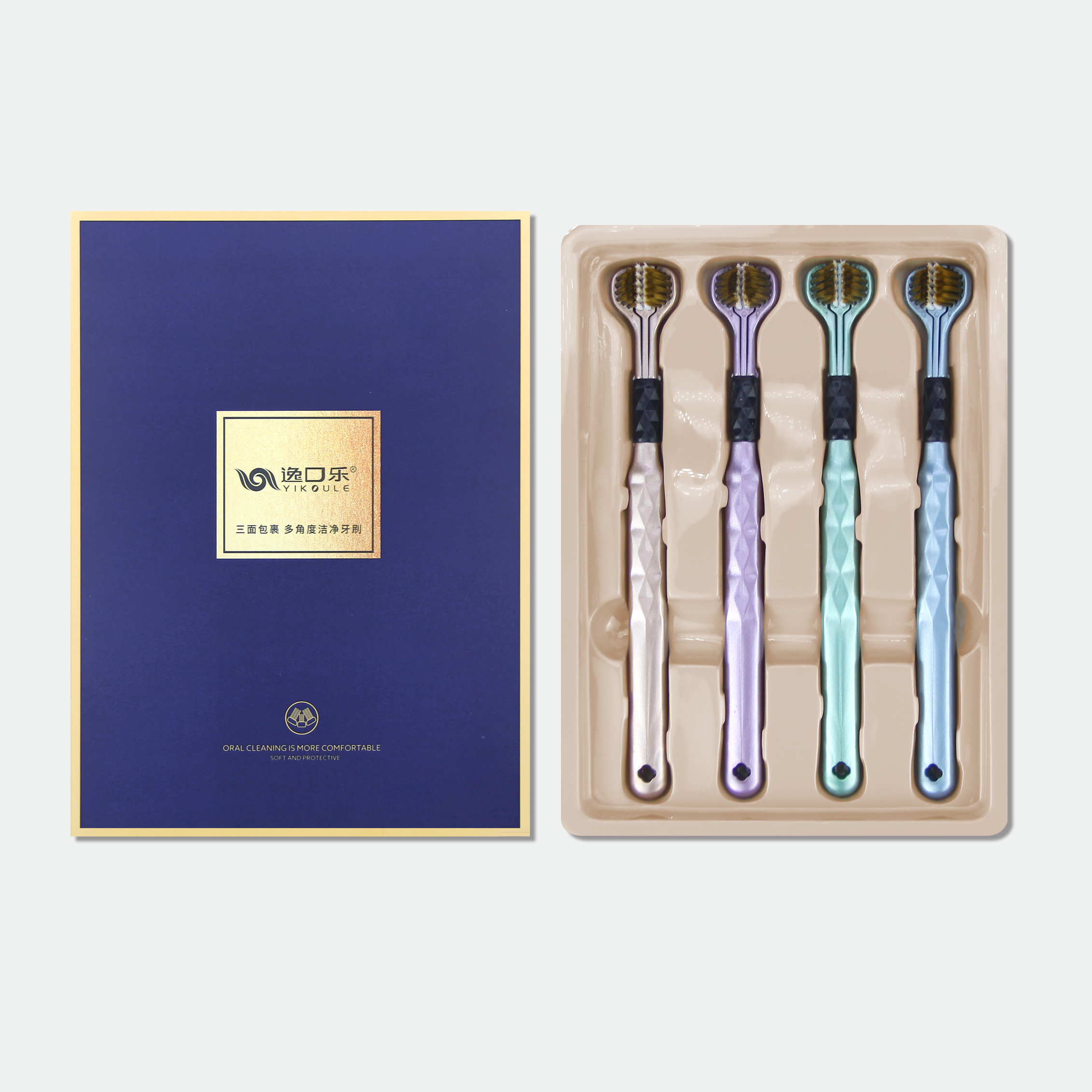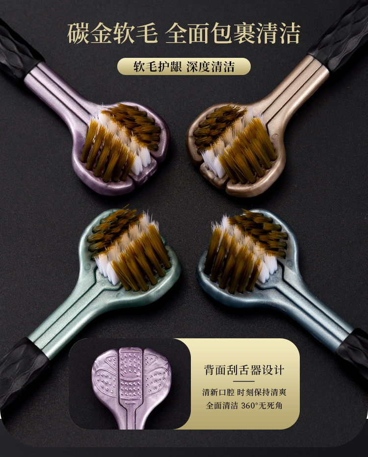 【4支360三面包裹式】情侣软毛高档家用宽头护龈清洁舌苔礼盒装牙刷