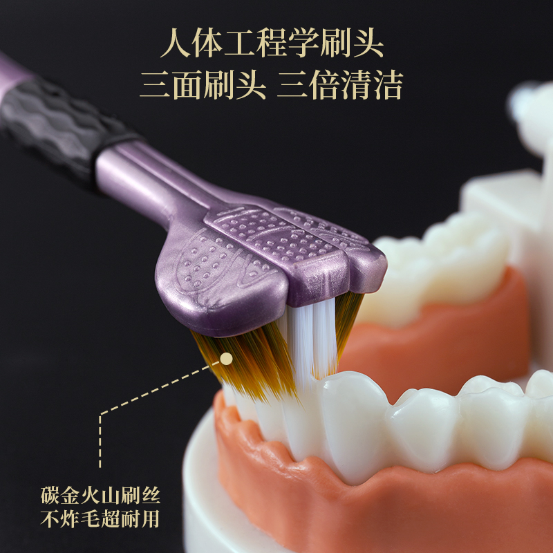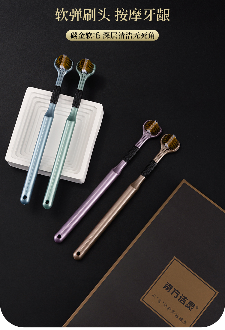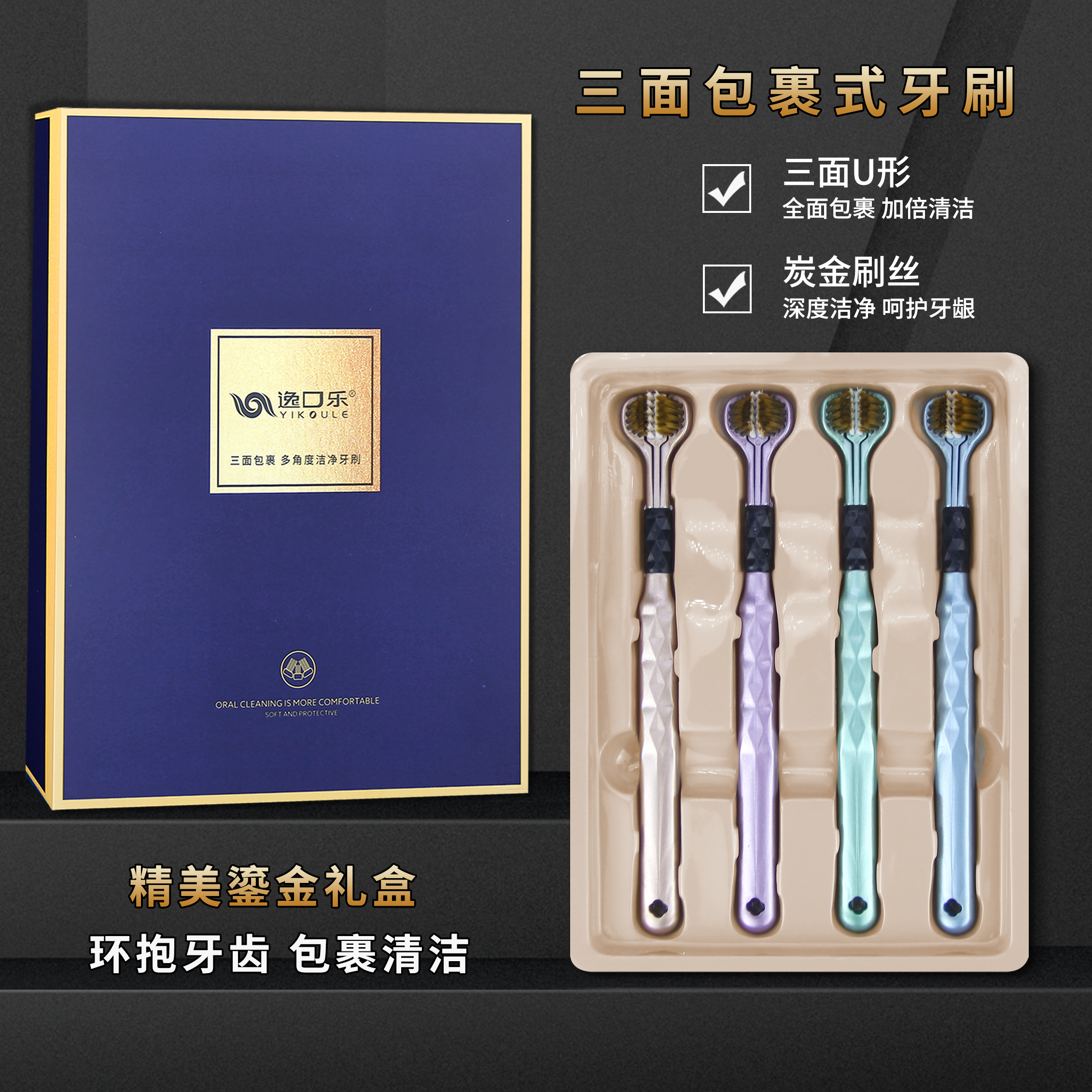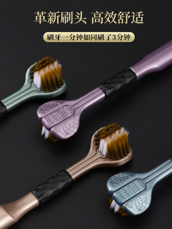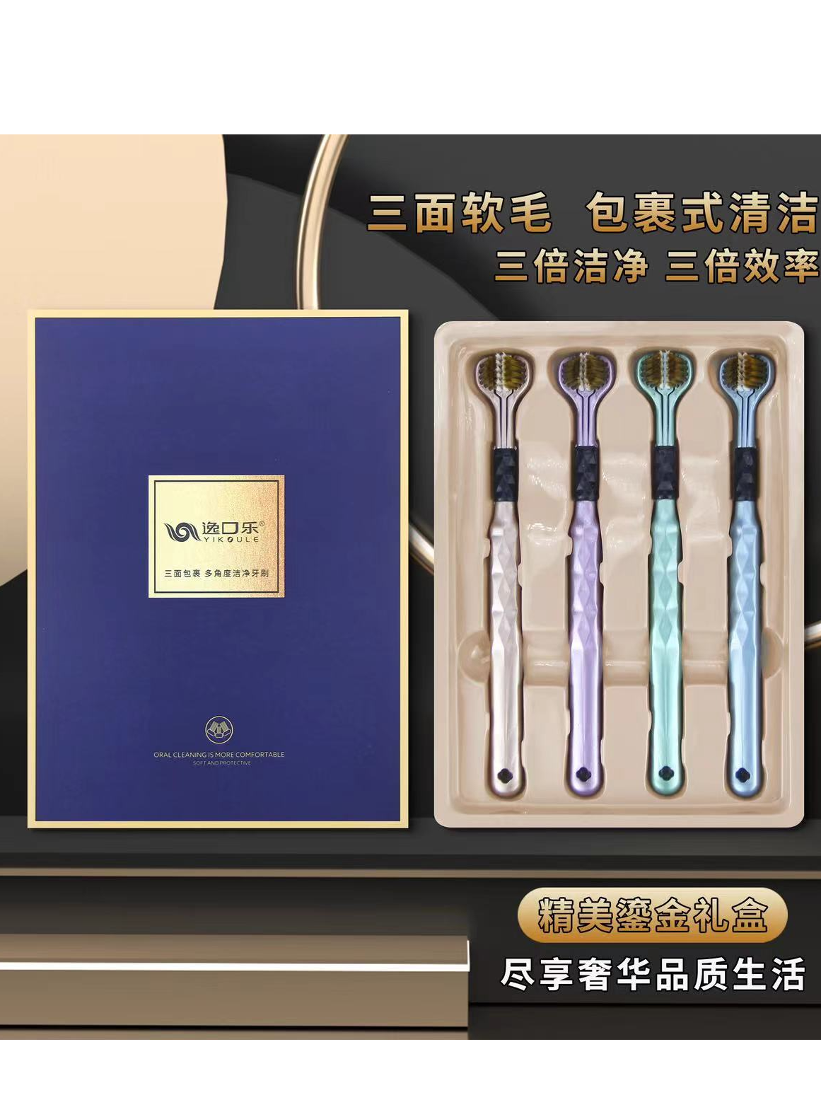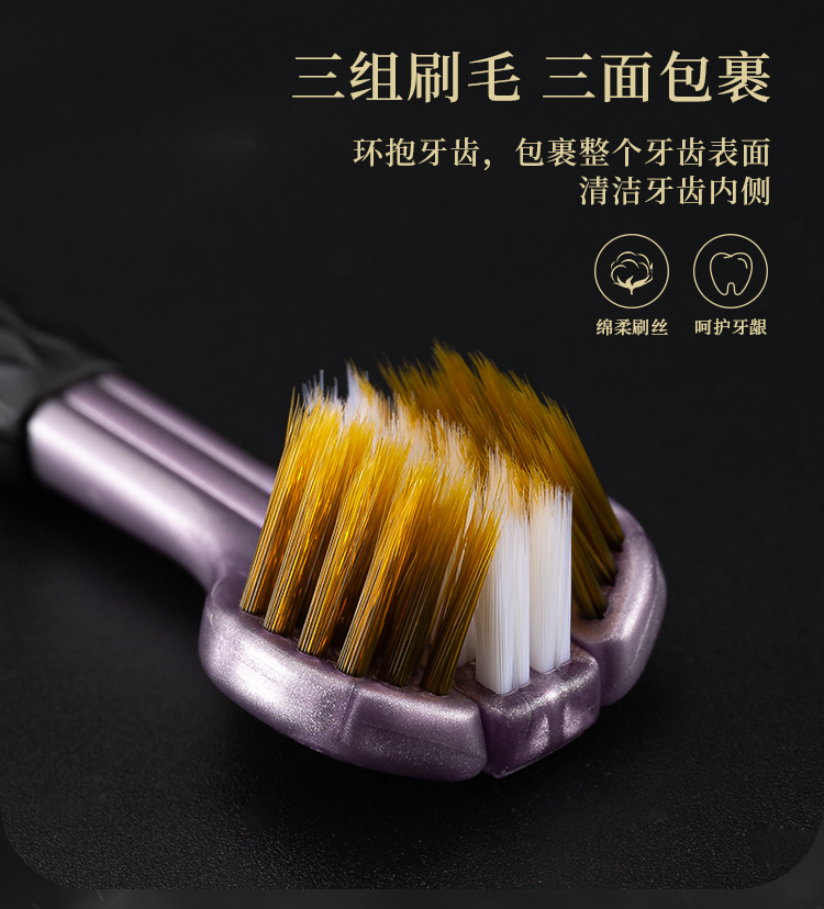 【4支360三面包裹式】情侣刷丝高档家用宽头护龈清洁舌苔礼盒装软毛
