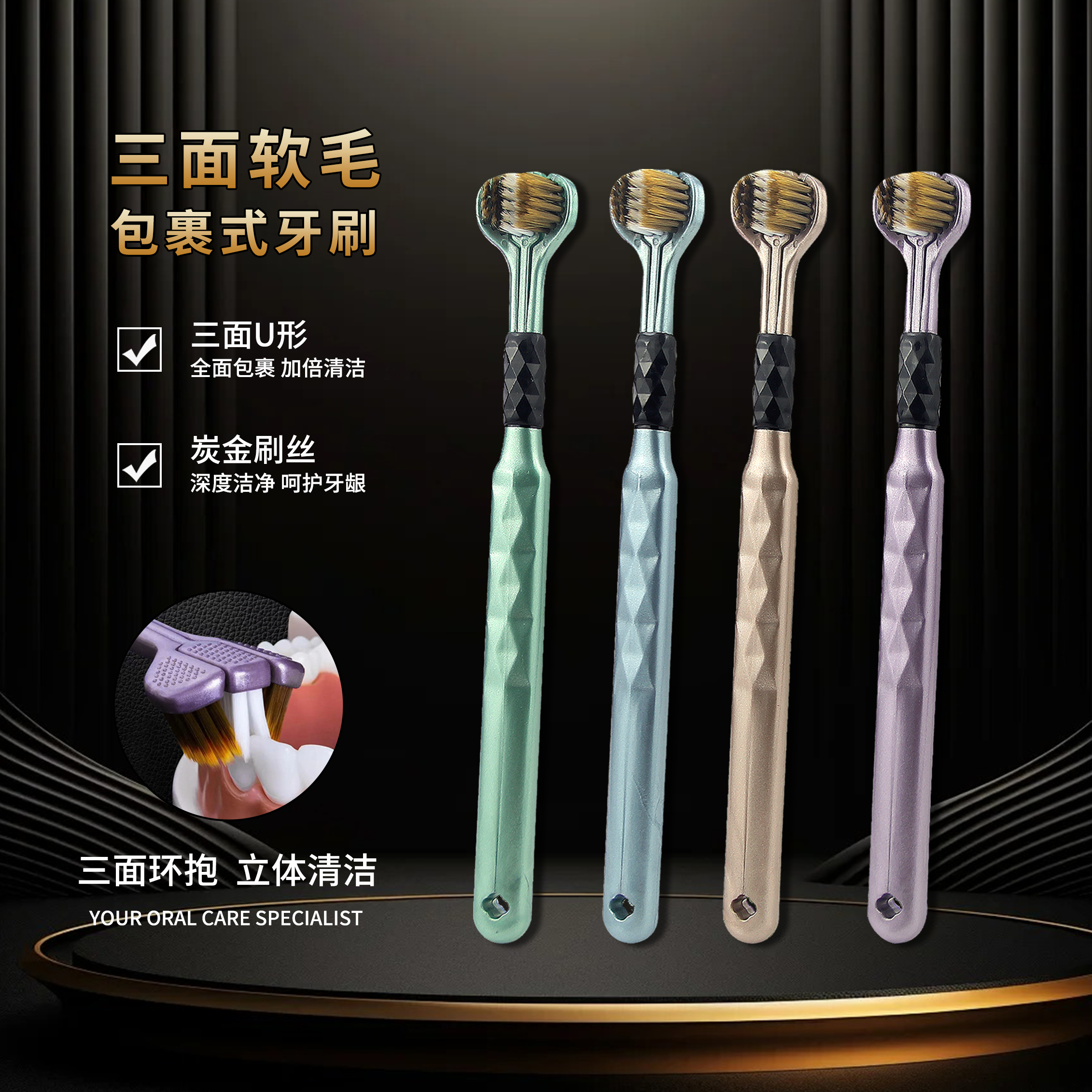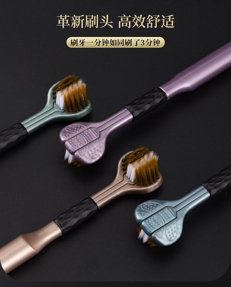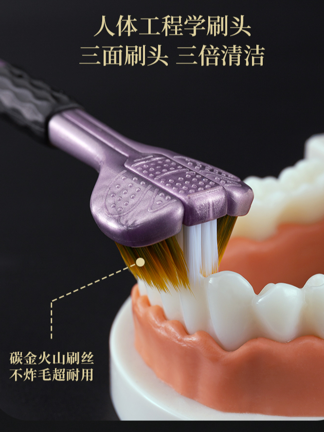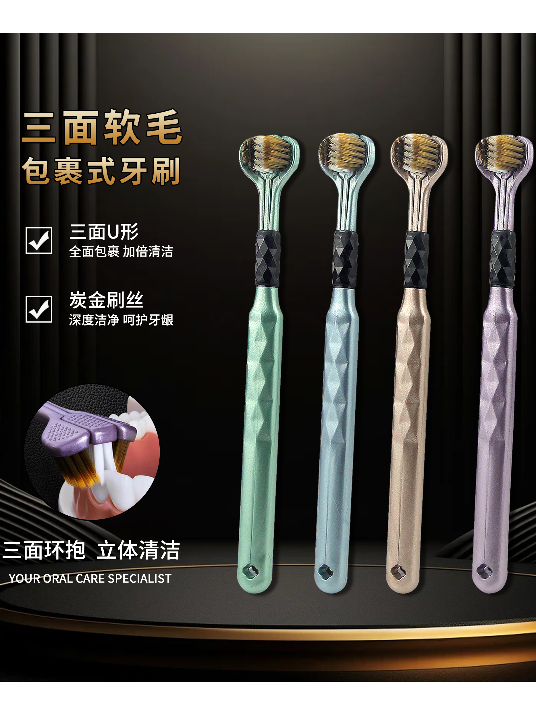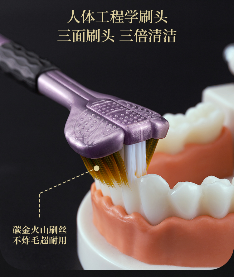 【4支360三面包裹式】情侣刷丝高档家用宽头护龈清洁舌苔礼盒装软毛