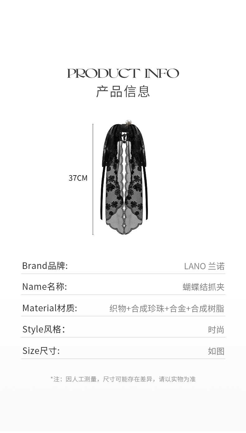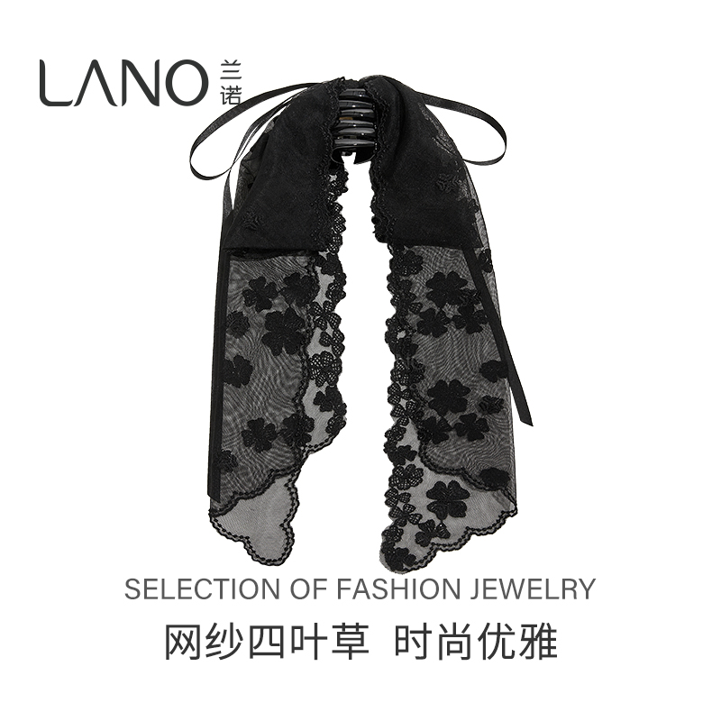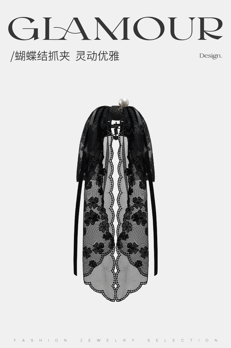 兰诺【晓月梧桐】法式蕾丝蝴蝶结长飘带抓夹气质时尚创意小众发夹