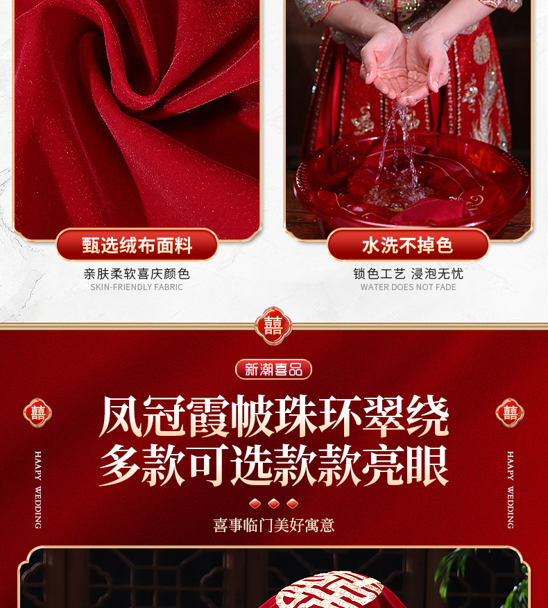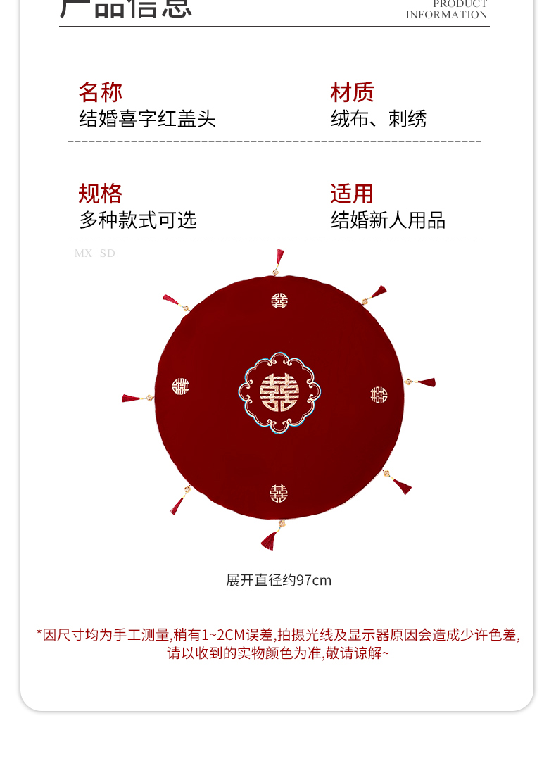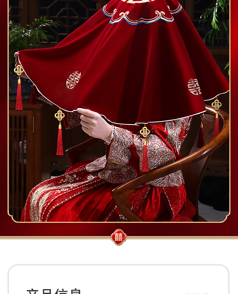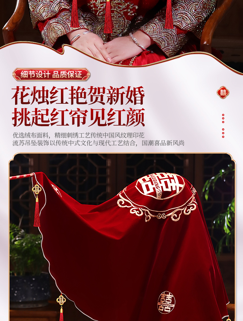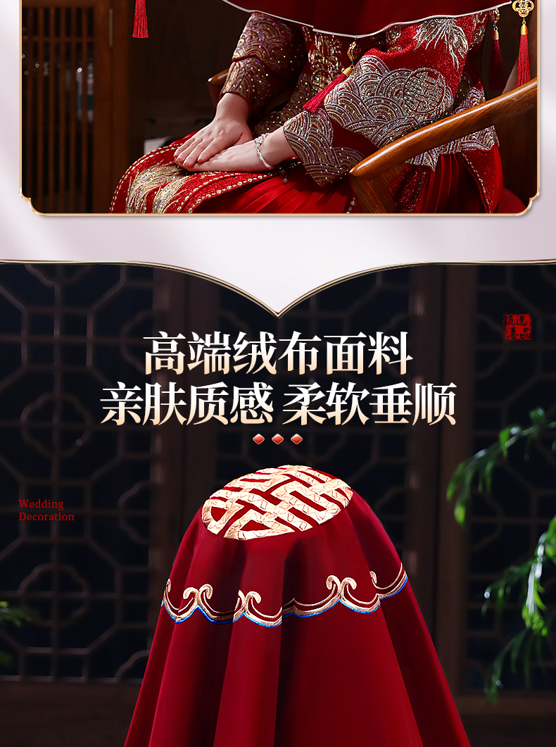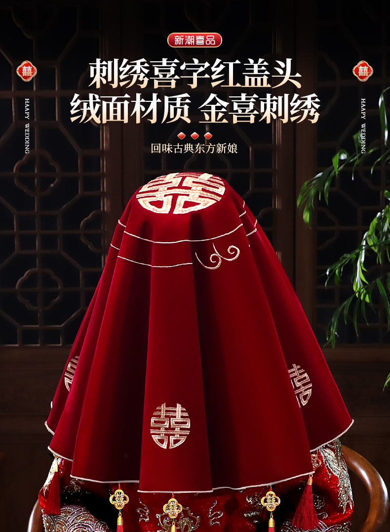 - ¥34.94 祥云双喜❤高档刺绣柔顺缎面红盖头