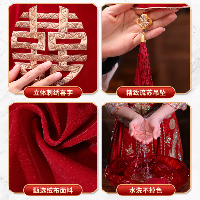 - ¥56.00 花边双囍❤高档刺绣柔顺绒布红盖头