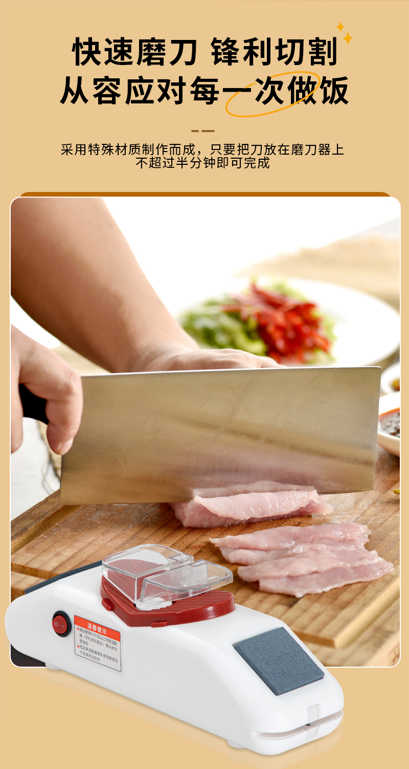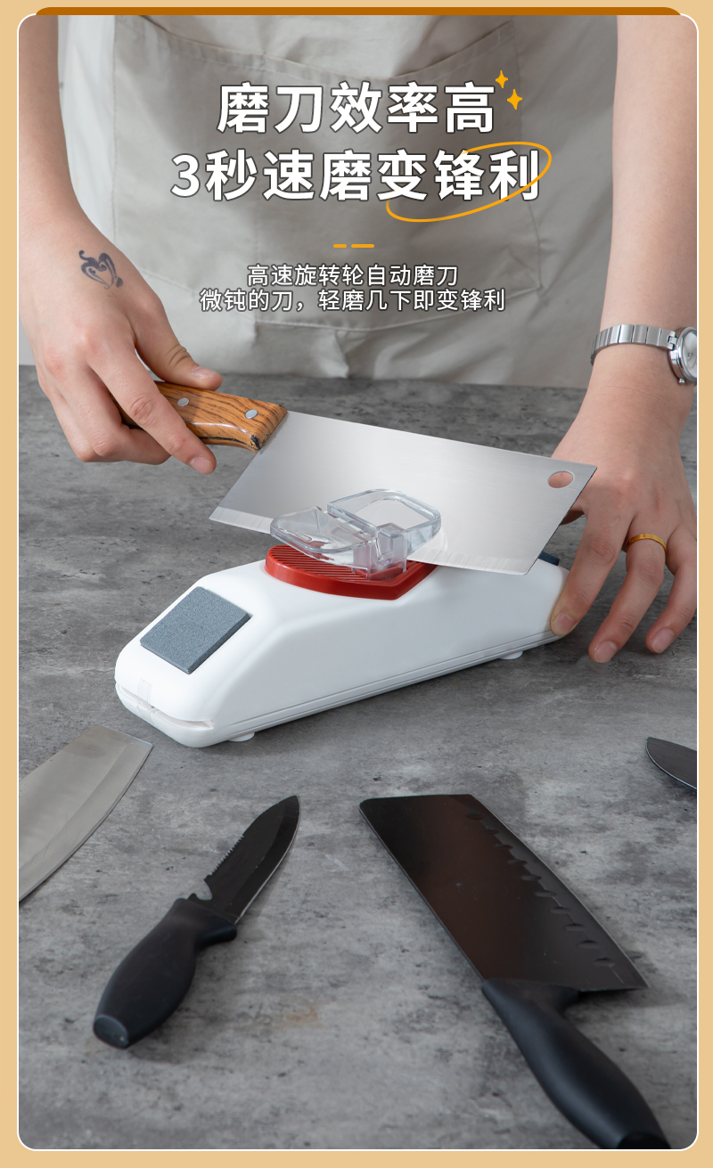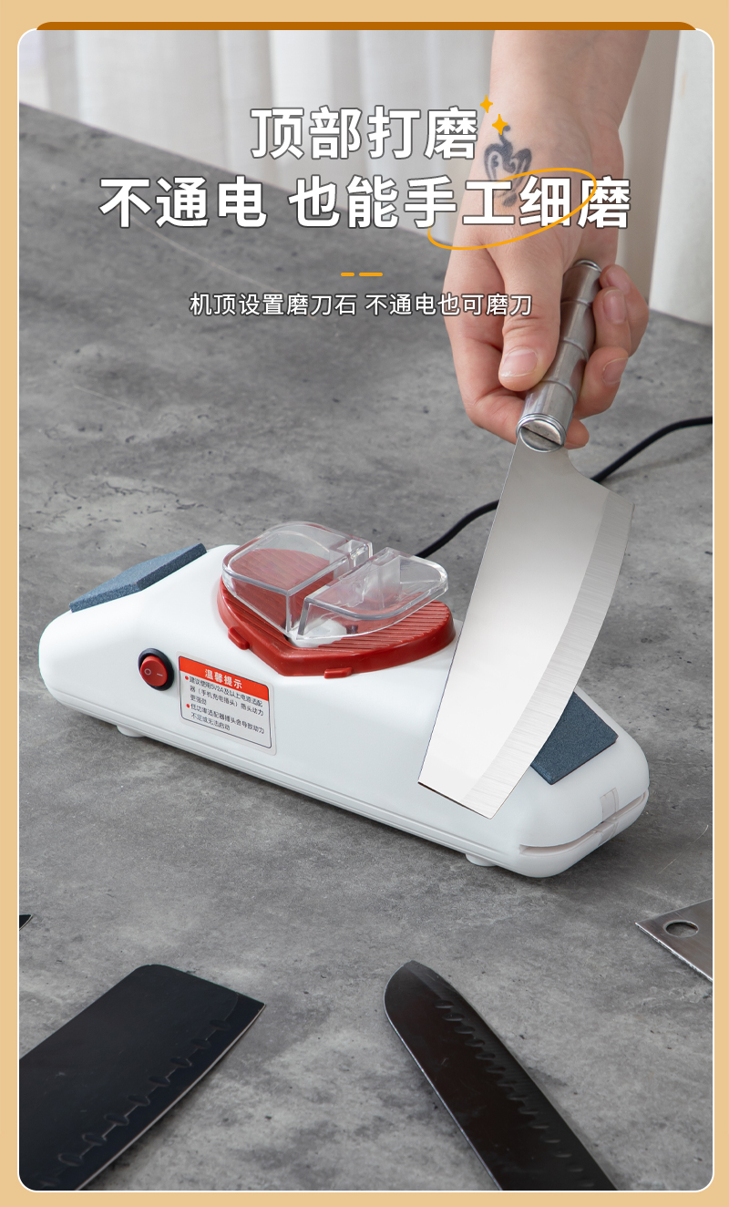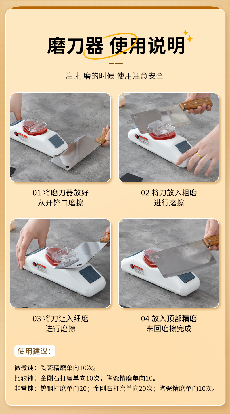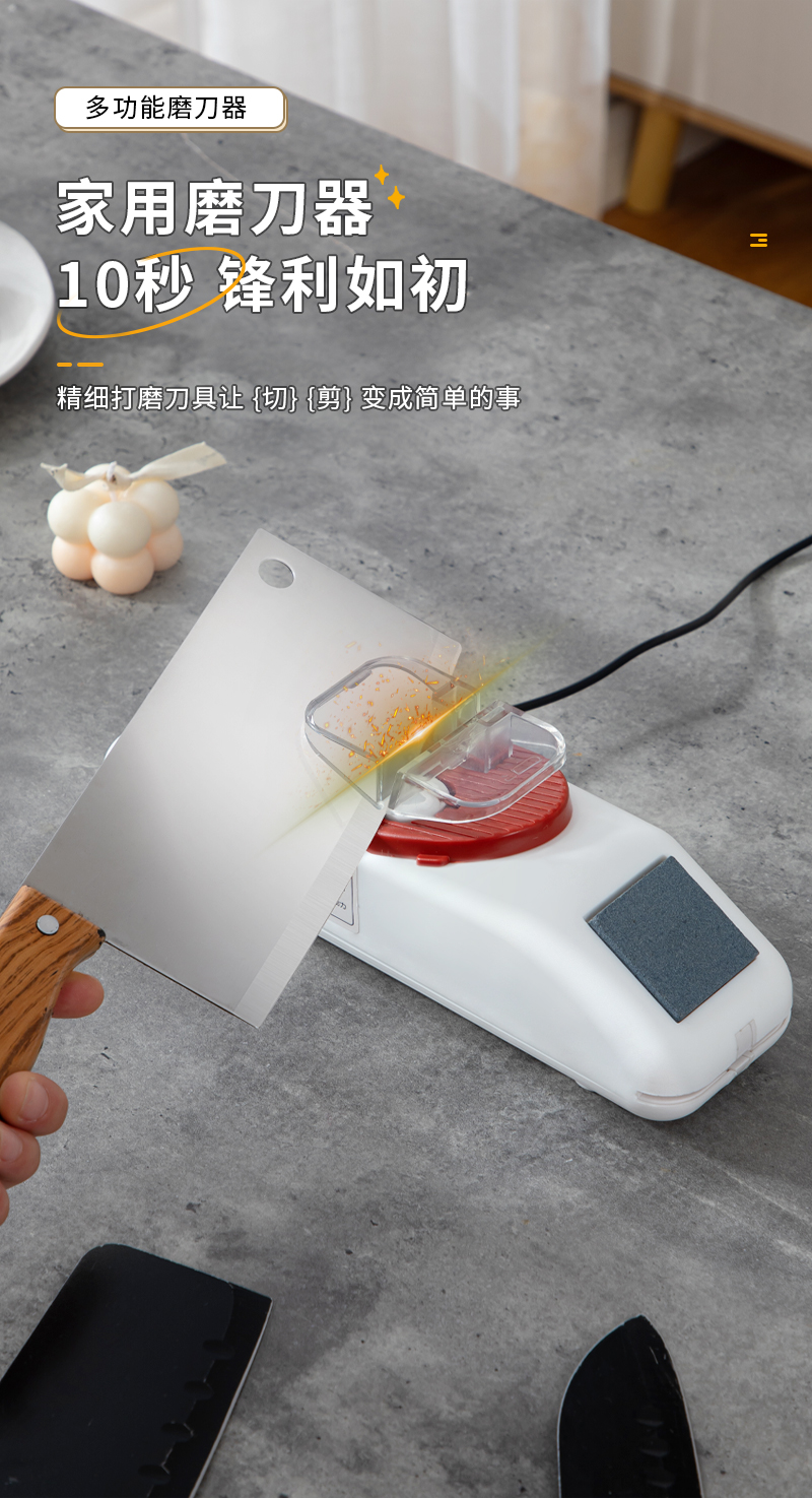 3. 磨刀器设计非常人性化,易于操作,用起来非常顺手。这款家用电动磨刀器让我感到非常满意。