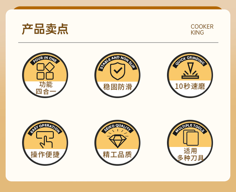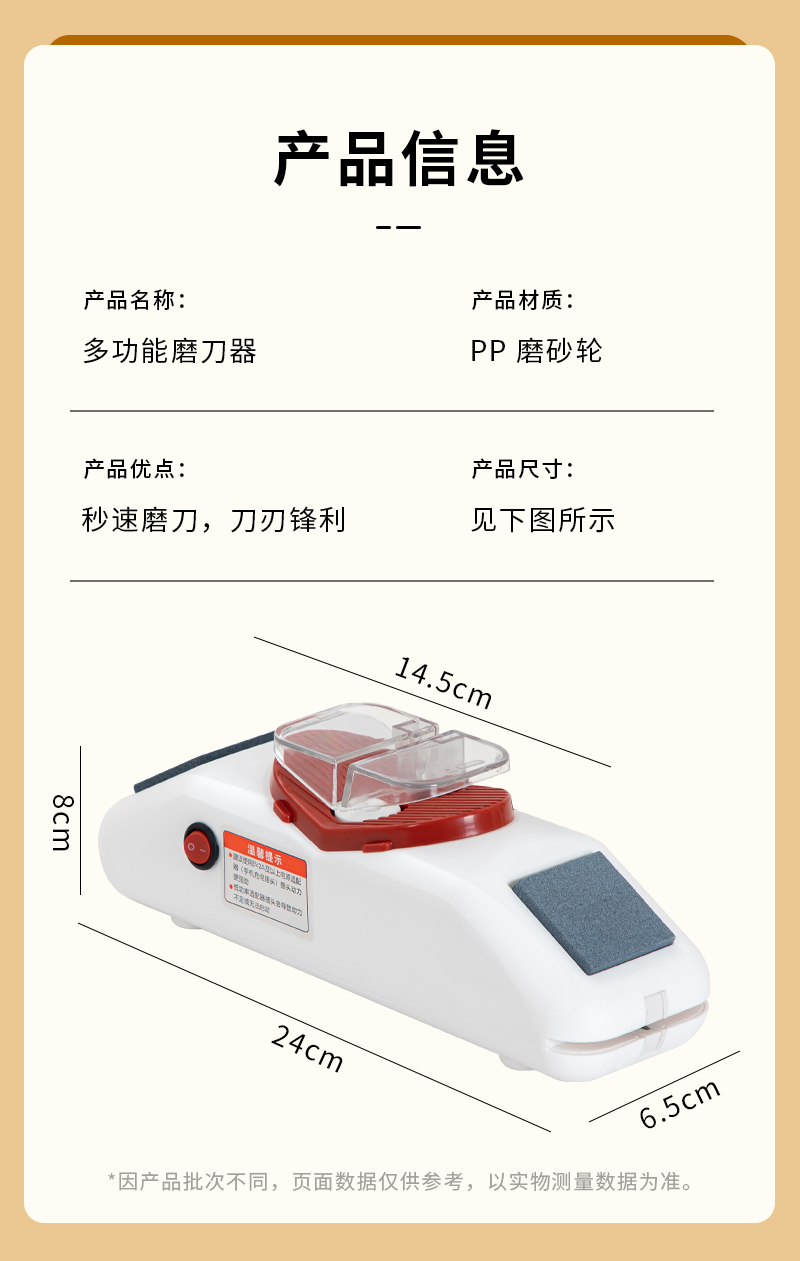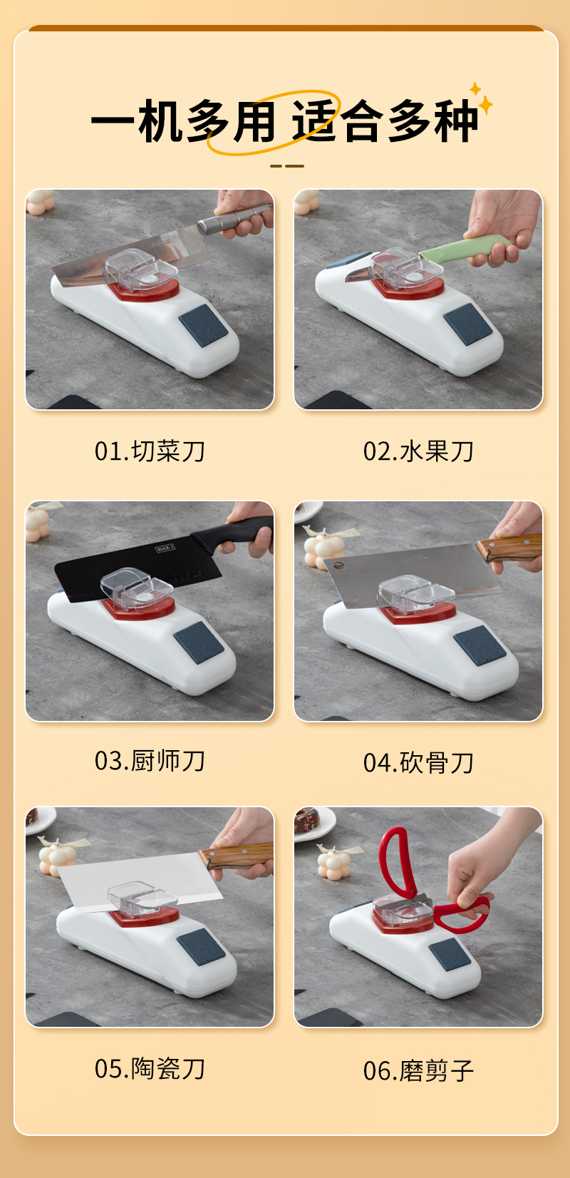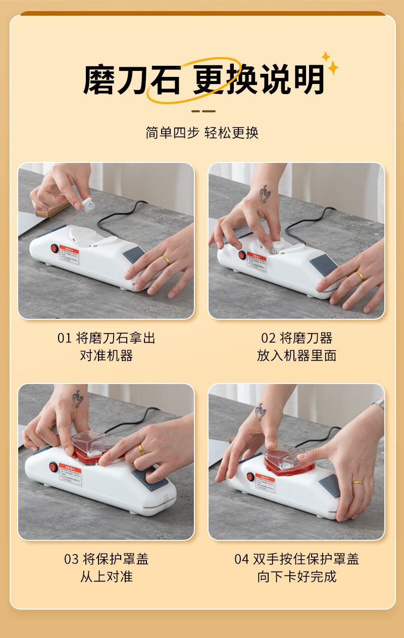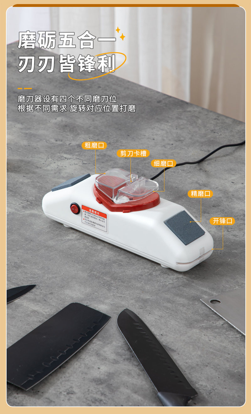 3. 磨刀器设计非常人性化,易于操作,用起来非常顺手。这款家用电动磨刀器让我感到非常满意。