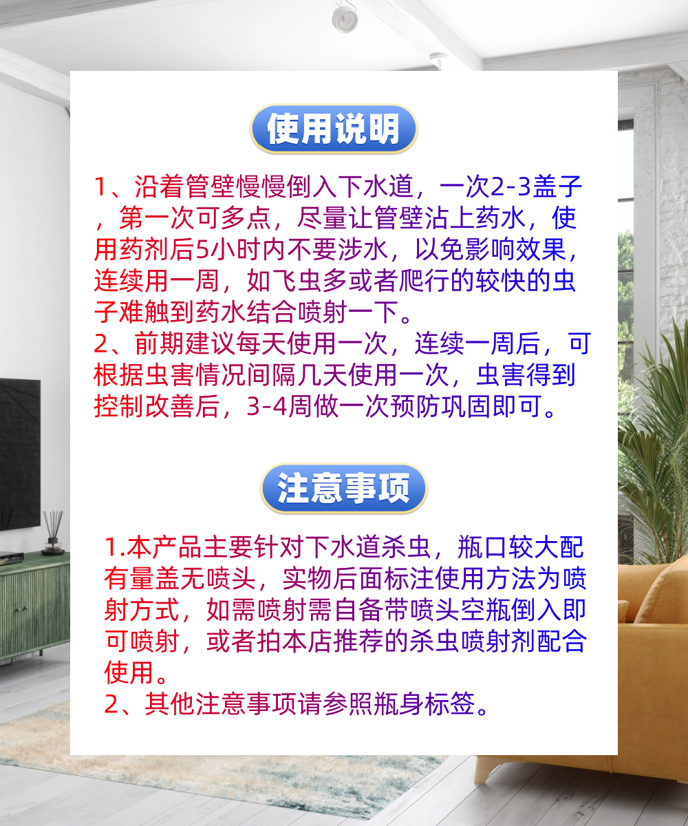 下水道小飞虫杀虫剂500ml*5瓶的组合,不仅能迅速驱除小飞虫,而且强力持久,还能抑菌防霉,一物多用很实用,特别适合家用。