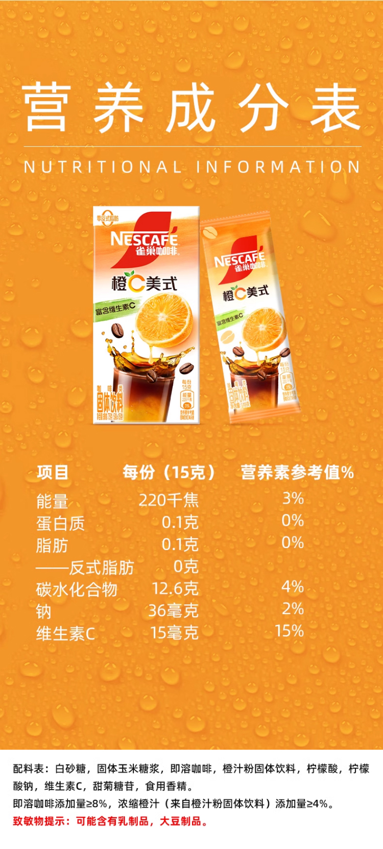 【达人专享】雀巢咖啡特调系列橙C美式原味香浓健康速溶添加真果汁