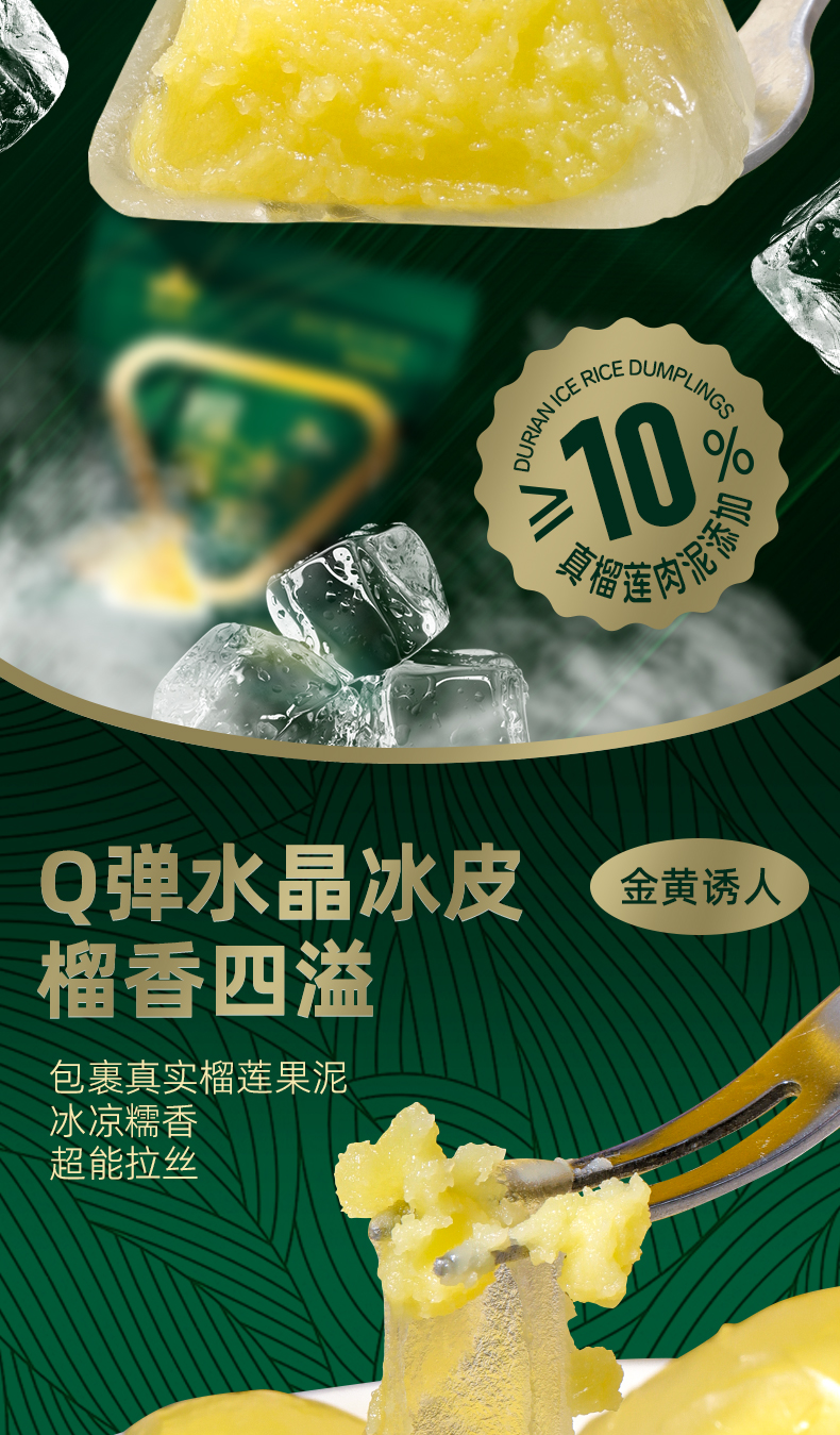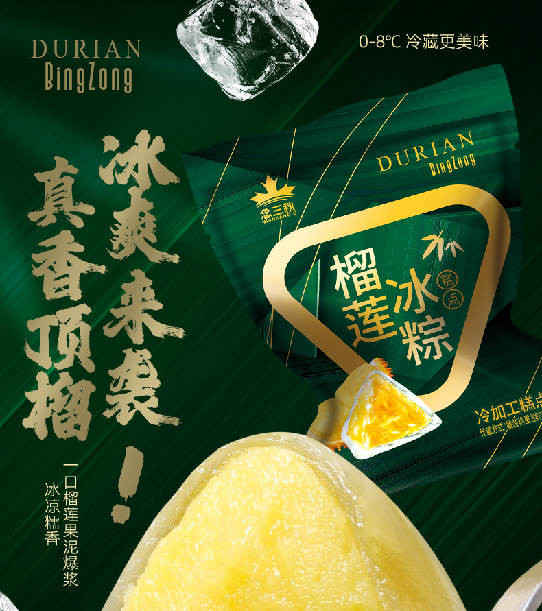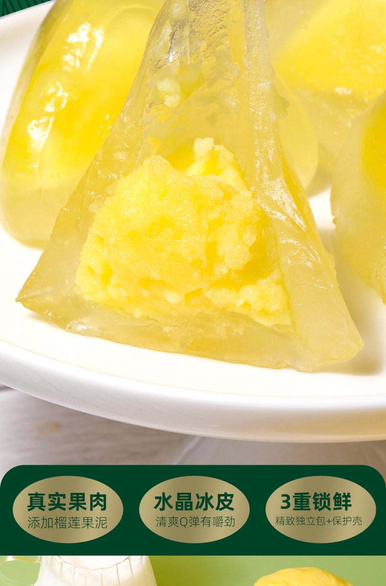 - ¥16.8010个*1箱(单个1.68元),榴莲冰粽【包装调整无礼盒】